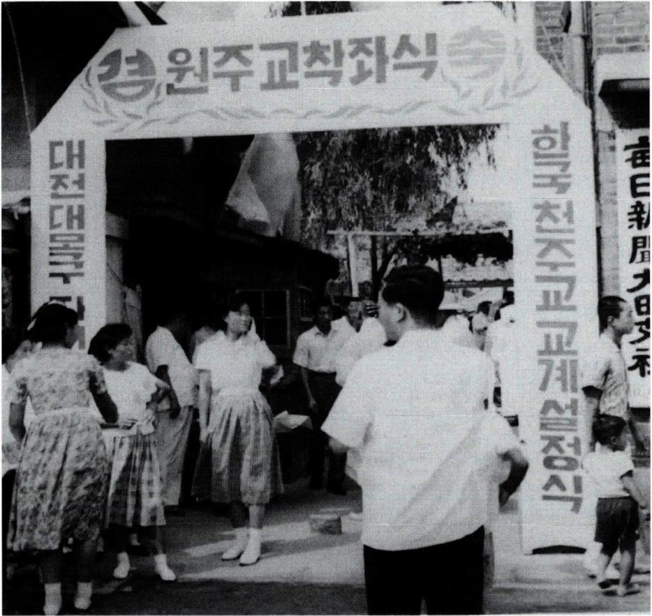 한편 대전 본당은 1945년 목동에서 대흥동(프란치스코 수도회 소유지)으로 이전하면서 1927년에 건립된 목동 성당을 프란치스코회에 인계하였다. 이에 따라 목동은 정식 본당이 아니라 수도회 소속의 준본당으로 변모하였으며, 1958년에 이르러 다시 정식 본당이 되었다. 당시 대흥동 본당의 제10대 주임으로 활동하던 오기선(吳基先, 요셉) 신부는 성당 이전 후인 1947년에 '충남 애육원'을 도(道)로부터 인수하여 운영하였다. 그리고 논산 본당의 제6대 주임 조인원(趙仁元, 빈천시오) 신부는 1945년 10월에 대건중등강습소를 설립한 뒤 1947년 2월에는 이를 3년제 초급 중학교로 승격 인가받았고, 1948년에는 '논산 천주교회 양로원' (현 쌘뽈 양로원의 전신)을 설립하였다. 대건중학교에서는 그 후 1951년에 대건고등학교를 병설, 인가받게 되었다.