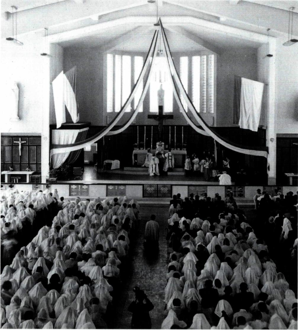 〔대전 대목구의 설립과 정착〕 이처럼 포교지의 모든 활동이 활발해지고, 아울러 교세가 확대되면서 노기남주교는 포교지를 대목구로 승격시켜 주도록 교황청에 요청하였다. 그 결과 1958년 6월 23일에는 교황 비오 12세에 의해 마침내 충청남도 지역이 '대전 대목구' 로 승격되었으며, 동시에 충청북도 지역도 '청주 대목구' 로 설정되어 메리놀회에 위임되었다. 이에 따라 라리보 주교는 이듬해 1월 11일 대흥동 주교좌 성당에서 착좌식을 갖게 되었다. 대목구 설정 이후인 1961년에는 한국 순교 복자 수녀회에서 천안에 복자여자중학교를 설립 · 개교하였으며, 이어 1963년에 복자여자고등학교를 병설 · 개교하였다. 또 1961년 12월에는 논산 본당의 생제 신부가 샬트르 성 바오로 수녀회의 협조를 얻어 논산 혜성여자중고등학교를 인가받고, 이듬해 이를 개교하면서 쌘뽈여자중고등학교로 개칭하였다. 이 학교들은 대건중고등학교, 대철중학교 등과 함께 1964년 4월 25일 학교 법인 천주교 대전교구 '대지 학원' 으로 편입되었다. 이무렵에 신설된 본당들로는 홍산 연무 · 성환 · 신합덕 · 대천 본당 등이 있으며, 1964년 11월에는 부산에 있던 '거룩한 말씀의 시녀회' (현 '거룩한 말씀의 회' 의 전신)가 대전으로 본원을 이전하였다.