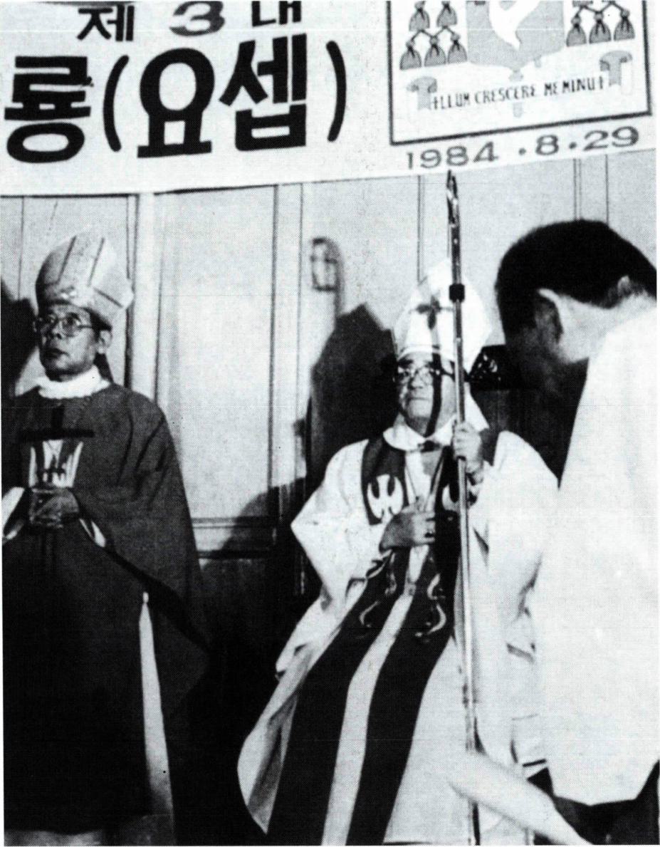 〔교구 체제의 정비와 변모〕 1984년 2월 15일 교구장 대리에 김영환(타대오) 신부가 임명되었다. 이때 교황청에서는 같은 해 7월 12일 서울대교구 보좌 주교요 총대리로 재임 중인 경갑룡(景甲龍, 요셉) 주교를 제3대 대전교구장에 임명하였다. 이에 따라 경 주교는 1984년 8월 29일, 대흥동 주교좌 성당에서 착좌식을 갖고 '회개를 통한 본래의 사명감 회복' 과 '희망찬 교회 건설' 을 모토로 사목 활동을 시작하였다. 그리고 이를 위해 우선 교구 체제를 정비하여 1984년 9월에는 교구청의 직제를 현재와 같은 조직 체제로 개편함과 동시에 부교구장제를 사무처장제로 변경하고, 기존의 사목국 · 관리국 외에 교육국 · 홍보국을 신설하여 1처 4국으로 운영하였다. 다음으로 1985년 초에는 사목 협의회, 전례위원회, 성지보존위원회, 건축위원회 등 교구장 아래에 특수 위원회를 둠과 동시에 평신도 사도직 협의회를 여러 위원회로 분리하고, 1986년 4월 14일에는 교구 '선교 사목 연구위원회' 를 발족시켰다. 이 중에서 교구의 특수 위원회는 사제들의 재능에 따라 교회에 더욱 봉사할 수 있도록 한다는 데 목적이 있었으며, 평신도 사도직 협의회를 각 위원회로 나눈 이유도 평신도들이 전문적이며 효율적으로 활동할 수 있도록 하기 위해서였다.