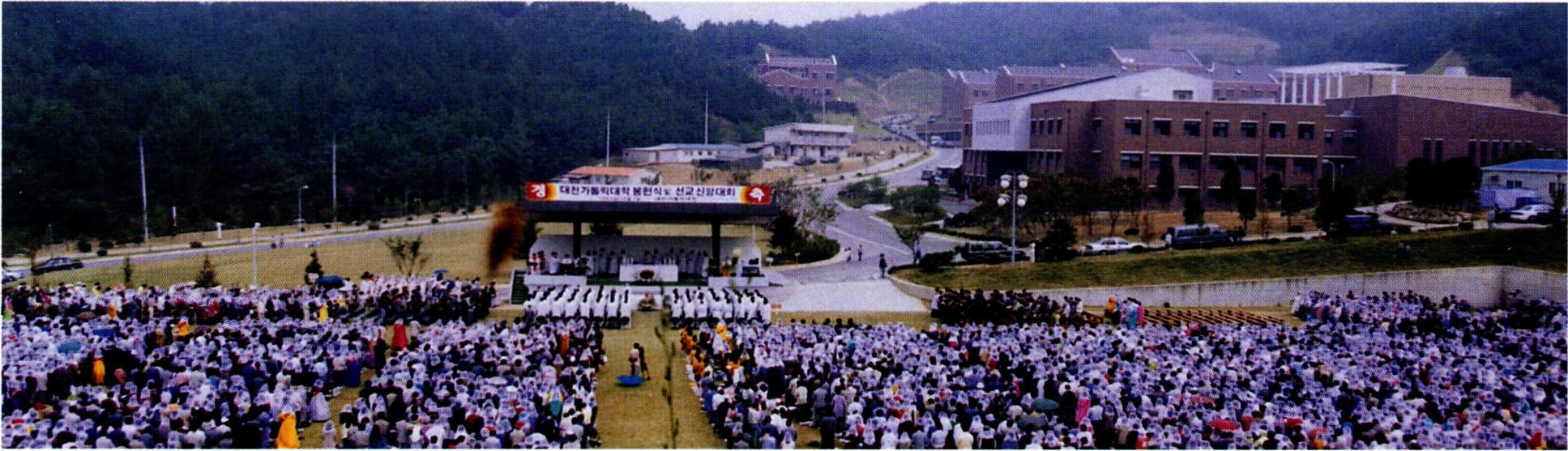 이러한 과정을 거치는 동안 대전교구의 교세는 1994년 말 현재 77개 본당, 공소 179개소, 성직자 160명, 총 신자수 154,452명으로 성장하였다. 그리고 1993년 3월 2일, 1986년부터 본격적으로 추진되어 온 숙원 사업인 '대전 가톨릭대학교 가 정식 인가를 받고 연기군 전의면에서 개교하였으며, 1995년 10월 3일 교구 신앙 대회를 겸하여 증축 완공된 가톨릭 대학교 봉헌식이 거행되었다. 이에 앞서 9월 20일에는 서산 상홍리에 있는 무명 순교자의 유해 일부가 본래 순교지였던 해미로 이장되었다. 또 1994년 12월 10일에는 가톨릭대학교 의과대학 대전 성모병원이 설립 25주년을 계기로 3차 증축을 완공하고 축성식을 가졌으며, 교구에서는 1995년의 가톨릭 대학교 봉헌식을 계기로 2000년대의 복음화를 위해 신자 배가 운동을 전개하기 시작하였다. 뿐만 아니라 1998년에 맞이하는 교구 설립 40주년을 기해 교구사 편찬과 함께 한국 천주교회 신앙의 못자리가 되어 온 교구 지역의 교회사 자료관 겸 박물관 설립도 계획하고 있다.