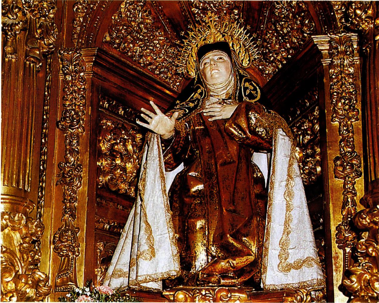 〔영성과 저술〕 데레사 영성 사상은 수도적 관상 생활과 사도적 활동의 조화와 일치라 할 수 있다. 어둡고 비열한 현실 속의 무지한 사람들을 이끌어 나가는 역할을 지닌 수도자의 행동을 역설한 그녀는, 하느님과 함께하는 고독을 얻기 위해 자신의 내부 세계로 몰입해야 한다고 가르치면서, 자아 속에서 하느님의 목소리를 듣는 영혼이 거치는 기도의 여정을 묵상의 기도 · 고요의 기도 · 합일의 기도의 여정으로 묘사하였다. 데레사는, 영혼의 내부에서 하느님을 찾으려는 개인적이며 심리적인 경향이 강한, 인간들이 물질 생활의 풍요로 인해 퇴폐와 타락에 빠져 하느님의 말씀으로부터 점점 멀어지려는 것을 막아 주었으며, 스페인 국민들의 마음에 신앙심과 도덕적 윤리관을 불어넣는 데 지대한 공헌을 하였다. 스페인 가톨릭 정신의 발로로서 생겨난 신비주의 문학의 거성이자 청빈 · 고행 · 기도를 지침으로 삼아 수도 사업을 전개한 행동가인 성녀 데레사의 근본적인 관심은 자신의 신비적 연인을 찾기 위한 영혼의 절규였다.