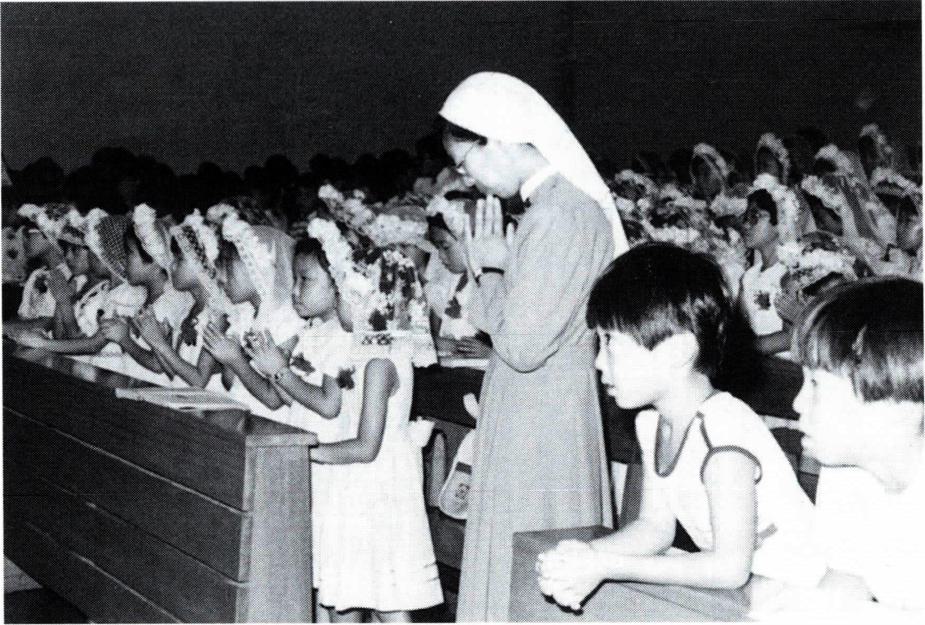 수련소가 개설되었고, 첫 한국인 회원인 박의열 수녀가 초대 수련장으로 양성의 책임을 맡았다. 1966년 3월 대 전 성모국민학교와 성모여자중학교를 개교함으로써 본 격적인 사도직 활동에 들어간 동정 성모회는, 당시 교구 청과 인접한 대흥동 520번지에 대전 본원 건물을 신축 하고 그 해 4월 7일 대전교구장 황민성(黃旼性, 베드로) 주교 집전으로 축복식을 거행하였다.
