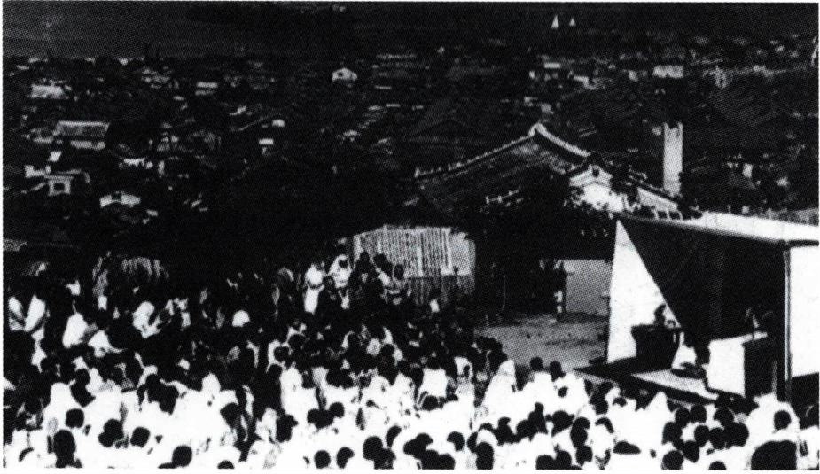 동학 교도들이 서울에 들어가 궁 앞에서 집단적으로 임금에게 직접 호소하자, 정부는 어리둥절하여 사흘 만 에 대표들을 달래어 돌아가게 하고 보름 뒤인 2월 26일 에는 모든 동학의 움직임을 아예 금지 · 엄단하라는 엄명 을 내렸다. 이 소식을 접한 동학 지도층은 각지의 교도들 을 보은군 장내리에 모이게 하였다. 3월 11일부터 2만 명이 넘는 동학 교도가 모여들었다. 이 보은 시위 운동은 규모와 조직으로 보아 무력 운동의 바로 전 단계이며, 구 호는 외국 세력의 배격에 중점을 두었다. 이는 서울에서 의 직접적인 청원 운동을 통해 우리 나라에서의 외세의 움직임, 특히 외세의 배격에 대하여 온 국민이 민감하게 반응한다는 것을 알았기 때문이다. 이에 놀란 정부는 한 편으로 청주에 군대를 파견하고 또 한편으로는 양호 선 무사(兩湖宣撫使) 어윤중(魚允中, 1848~1895)을 보내 동