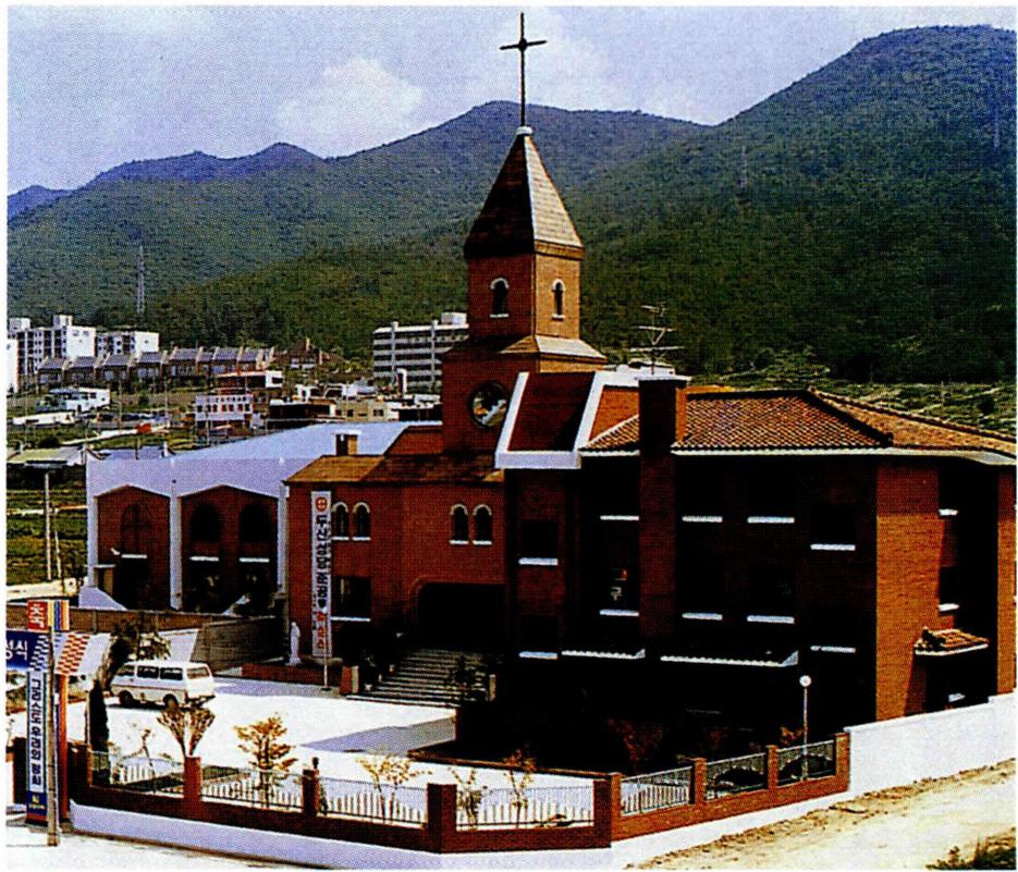 본당 설정 이전인 1960년 8월에 성당을 신축하고 1975년 4월 사제관을 신축한 데 이어, 1980년 그리스 도 교육 수녀회의 도움으로 콘센트 건물을 지어 교리실 로 사용해 오다가 신자수 증가로 성당 신축의 필요성이 대두되었는데, 마침 계산동 본당 서영희(데레사)의 희사 로 두산동 742-7번지에 새 성당터를 마련하고 공사를 시작할 수 있게 되었다. 1989년 6월 24일 대지 650평 에 지하 1층, 지상 2층, 총건평 460평의 새 성당과 사제 관, 수녀원 축성식을 거행하였다. 이때 성당 명칭도 지산 동에서 두산동으로 개칭하였다. 1993년 여름에는 교육 관을 신축하였다. 한편 두산동 본당 지역이 점차 신흥 주 택지로 개발되면서 대규모 아파트 촌이 형성되어 신자수 의 급격한 증가를 이루게 되었다. 특히 모든 레지오 마리 애 단원이 가두 선교 단원이 되어 선교 운동을 활발히 전 개하였는데, 1992~1994년 동안 1,477명의 영세자를 배출하기도 하였다. 이 때문에 1994년에는 2,500세대 에 신자수가 7,500여 명에 이르러 성당 수용 인원이 포 화 상태가 되었다. 이와 같은 증가로 본당 분할의 필요성 이 절실하게 되어 옛 두산동 본당 자리였던 지산동 443- 1번지에 새 성당을 짓기로 결정하고 공사를 시작하였다. 1994년 1월 착공하여 이듬해 6월 4일 완공된 지산1동 성당은 지하 1층, 지상 3층, 연건평 725평으로 순수하 게 두산 본당 신자들만의 힘으로 지어졌기에 더욱 의의 가 있다.