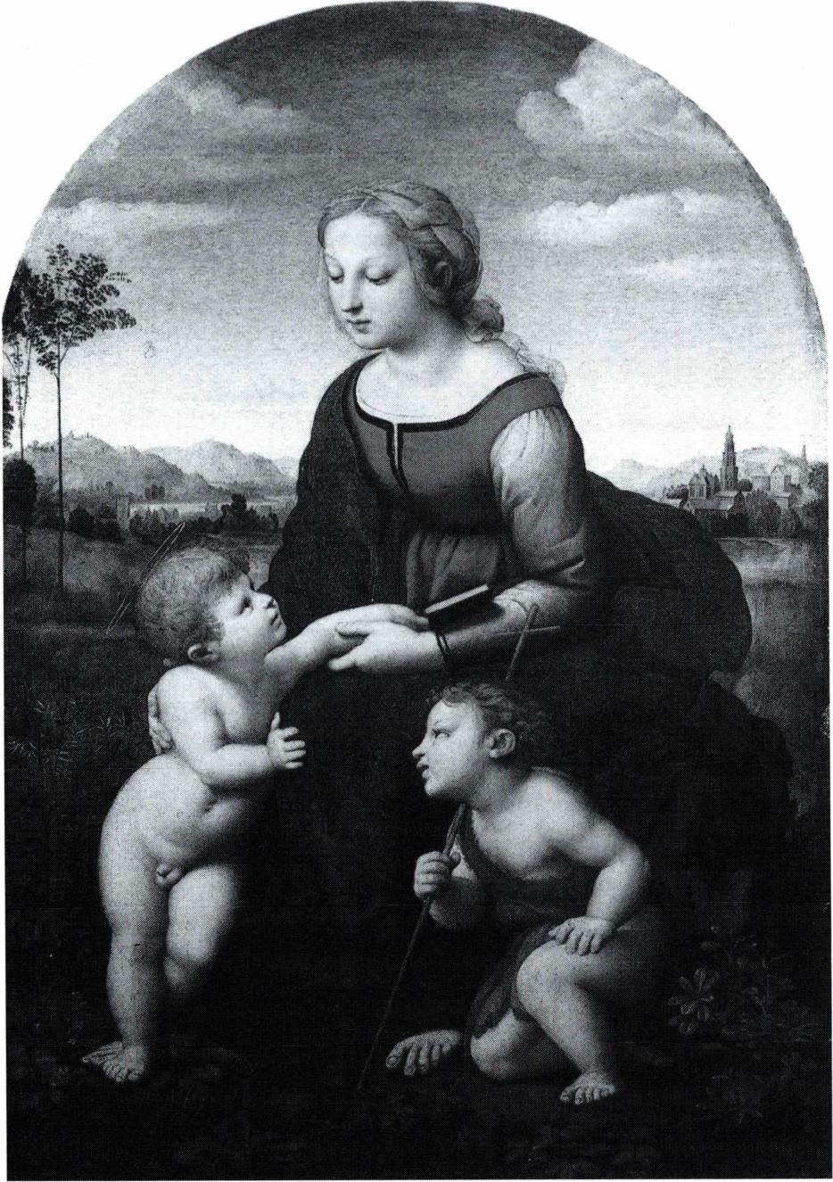 1520년 4월 6일, 37세의 나이로 세상을 떠난 젊은 예술가 라파엘로의 생애는 많은 성공담으로 가득하며 그의 작품 또한 외관상 힘들어 보이지 않는 우아함으로 충만 하여 미켈란젤로의 작품에서 보여지는 비극적인 장려함은 보이지 않는다. 르네상스의 혁신적인 면에서는 라파엘로 자신이 영향을 받았던 세 작가, 레오나르도 다 빈치, 브라만테, 미켈란젤로만큼 공헌하지는 못하였지만 오늘날 르네상스의 양식이라고 인식되는 중요한 특징들이 그의 작품에서 가장 잘 관찰되고 있다. 라파엘로의 천재성은 그의 독특한 종합력에 있다. 그는 레오나르도 다빈치와 미켈란젤로를 포함한 선배와 동년배 작가들의 여러 가지 특색과 경향을 충분히 이해하고 종합하여 르네상스의 조화와 균형의 정신을 형상화하였다. 그리하여 서정적이면서도 극적인, 그리고 회화적으로 풍부하고 조각적으로 견고한 작품들을 만들어 냈다. 이러한 종합력은 그가 페루지노 밑에서 도제로서의 수련 기간을 끝내고 피렌체에서 그린 초기의 작품에 이미 나타나 있다.