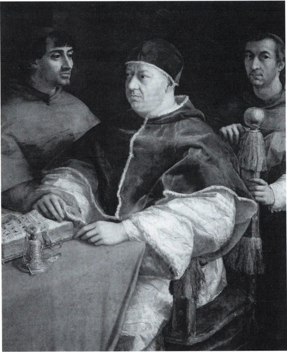 라파엘로는 일찍부터 초상화에 특별한 재능을 보였다. 이 또한 그의 천부적인 종합력에 기인된 것으로 15세기 초상화의 사실주의적인 경향을, 전성기 르네상스의 인간 이상적 모습과 결합시켰다. 그는 결코 대상을 더 보기 좋게 그린다든가 관습적인 틀에 맞추어 그리지 않았다. 교황 레오 10세의 초상화는 그를 실제보다 더 미남으로 그리지 않았으며, 두터운 턱을 가진 교황의 무뚝뚝한 얼굴은 거의 플랑드르 회화의 세부 묘사에 가까울 정도로 정확하게 묘사되어 있다. 그럼에도 불구하고 교황의 초상화는 당당한 풍채와 그의 내부에서 풍겨 나오는 위엄과 힘을 보여 준다. 라파엘로는 교황의 성격을 꾸며 내지 않고 그의 성격에 초점을 맞추어 고귀하게 만들었다. 그 옆에 서 있는 두 명의 추기경의 균형 잡힌 힘이 결여된 초상과 대조되어 교황의 군주적인 성격은 한층 더 강조되고 있다. 그리고 강한 빛, 색채와 질감의 묘사 역시 레오 10세의 실재감을 높이고 있다. (→ 회화)