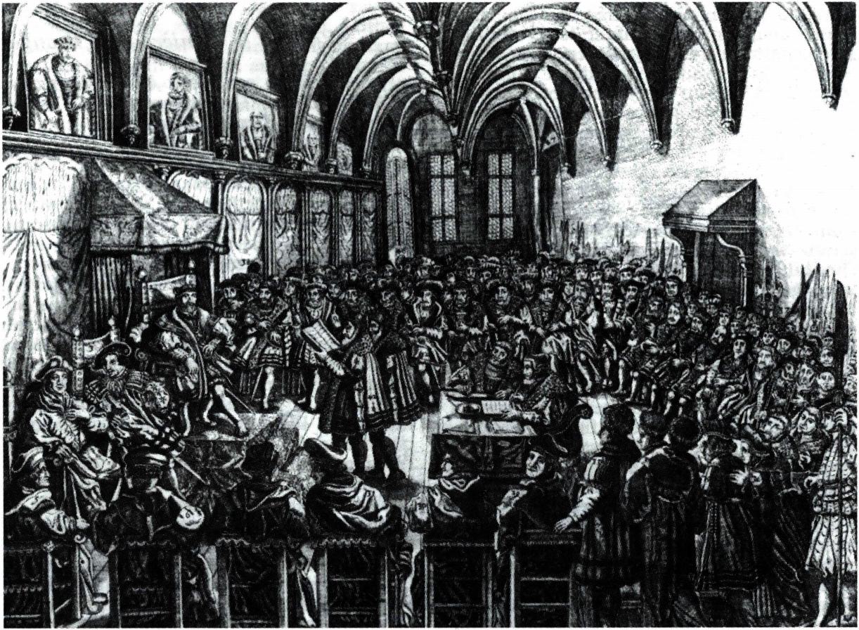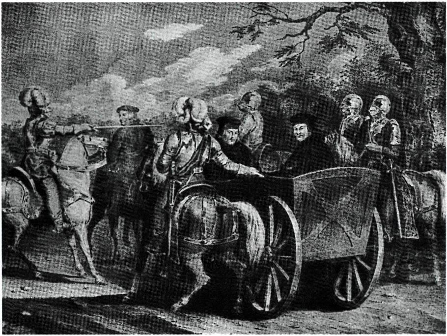 〔프로테스탄트 루터〕 보름스 제국 의회 : 신성 로마 제국의 황제 카알 5세(1519~1556)는 1521년 1월 27일부터 보름스(Worms)에서 열린 제국 의회에서, 파문받은 루터의 국외 추방령을 선포하려고 시도하였으나 프리드리히 선제후가 루터 문제를 의회에서 심사하도록 요청하였다. 의회 출두령을 받은 루터는 4월 16일 군중들의 환영을 받으며 보름스에 입성하여, 다음날 황제 앞에서 그의 주장을 철회하라는 압력을 받았다. 생각할 시간을 요청하여 하루의 말미를 얻은 그는 4월 19일에 의회에서 그의 교설을 변론하고서 성서에 의거하여 그것이 오류라고 증명되지 않는 한 취소할 수 없다고 주장하였다. 다음날 황제는 루터의 오류에 대해서 국가가 아직도 어떠한 조치도 취하지 않은 사실에 대해 유감을 표명하면서 그를 이단자로 공인할 것을 촉구하였다. 5월 8일 카알 5세는 루터의 법익(法益)을 박탈하고 추방령을 공포하는 칙서에 서명하여 5월 25일에 공포하였다. 그러나 제후들이 이미 귀향한 뒤여서 칙령의 시행은 결정되지 못하였다.