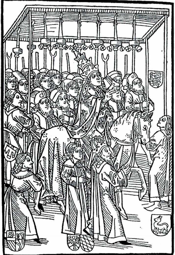 ② 마르티노 5세(1368~1431) : 교황(1417~1431). 원래 이름은 오도네 콜론나(Oddone Colonna). 1368년에 이탈리아의 제나차노(Genazzano)에서 태어나 페루지아(Perugia) 대학에서 법학을 공부하였으며, 교황 우르바노 6세(1378~1389) 밑에서 제1 서기관(protonotary)으로 일하였다. 교황 보니파시오 9세(1389~1404) 때는 이탈리아의 여러 법정에서 교황 대사로 활약하였고, 1401년 12월 15일부터 1405년까지 그리고 1412년 9월 18일부터 23일까지 팔레스트리나(Palestrina) 교구의 교구장 서리를 역임하였으며, 1405년 6월 12일 교황 인노첸시오 7세(1404~1406)로부터 벨라브로(Velabro) 산 지오르지오(San Giorgio)의 부제 추기경으로 임명되었다. 그러나 그는 합법적인 교황인 그레고리오 12세(1406~1415)를 버리고 피사(Pisa) 교회 회의에 참석하여 대립 교황인 알렉산델 5세(1409~1410)와 요한 23세(1410~1415)를 선출하는 데 참여하기도 하였다.