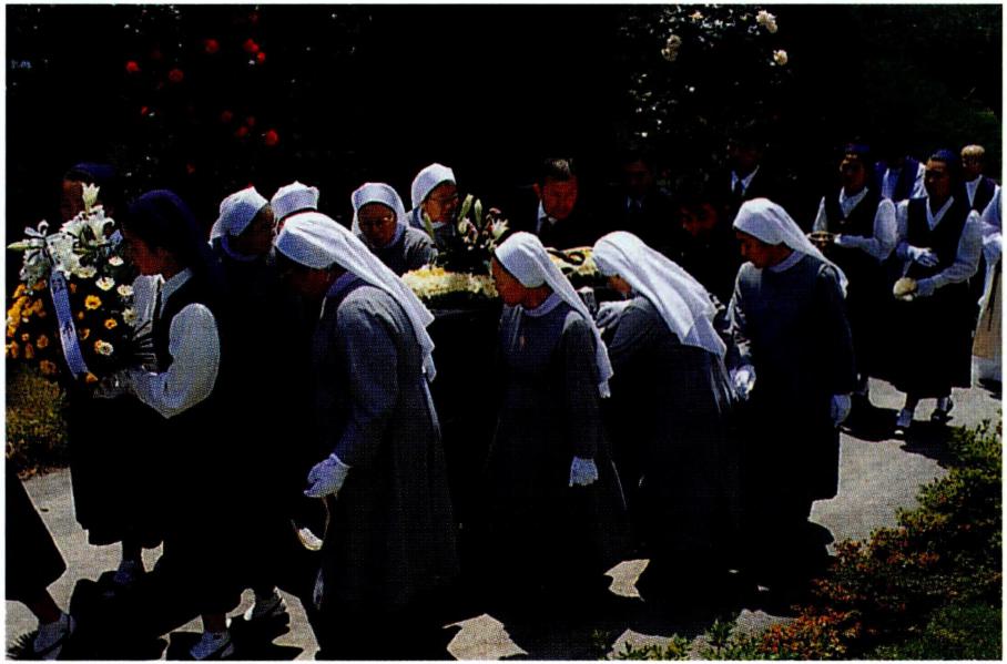 묘지를 떠나기 전에 참가자들은 고별 인사를 하였다. 이교도들의 인사는 마지막으로 헤어질 때 하는 '잘 있어라' (vale)이지만, 그리스도인들의 인사는 '영원히 살아라' (vivas)이다. 이 인사는 세상을 떠난 이가 하느님 안에서 영원히 살며 살아 있는 이들을 위하여 전구해 달라는 기도이다. 죽은 이를 기억하는 특별한 날들은 3일, 7일(또는 9일), 30일(또는 40일), 그리고 연례 주기(周忌)이다. 성인들의 축일은 바로 이러한 주기 거행으로부터 발전하였다. 그 축일들은 그리스도의 부활로써 특별한 의미를 지니게 된 삶과 죽음의 신비 곧 파스카 신비의 연장이라 하였다. 그래서 아우구스티노는 "이것이 바로 그리스도인들을 다른 사람들과 구별 짓게 하는 신앙"이라고 말하였다.