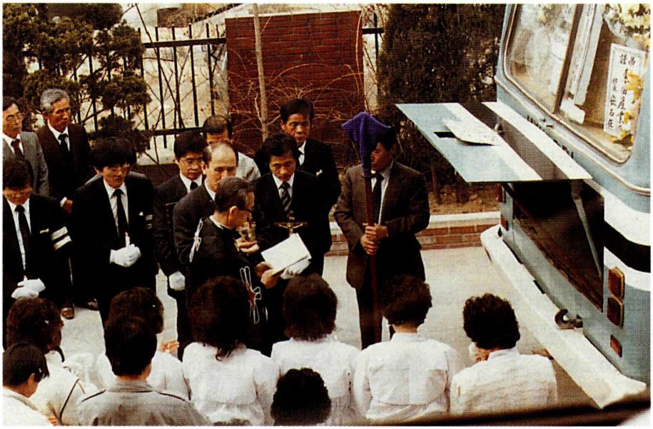 ① 염습(殮襲) : 죽음을 확인한 다음 눈을 감겨 주고 입을 닫아 준다. 이때 그리스도인들은 곡(哭) 대신 시편을 노래하였는데, 아우구스티노는 하느님의 자비와 심판을 노래한 시편 100편에 대해 언급하고 있다. 그 다음에 시신을 깨끗하게 씻는다. 사도 행전에서도 도르가 (Dorga)의 시체를 깨끗이 씻었다고 증언하고 있다(9,37). 테르툴리아노(Tertullianus)는 "내가 죽는다면 깨끗이 씻고 난 후에 창백하게 굳어갈 것이다" 라고 하면서 이러한 관행의 지속을 증언하였다. 또한 가시아노(JoannesCassianus), 안토니오(St. Antonius), 아우구스티노의 증언에 따르면 이집트의 그리스도인들은 때때로 방부 처리를 하였다고 하며, 키로(☧) 문자나 착한 목자상을 유해와 함께 묻기도 하였다. 일반적으로 시신을 보존하기 위해 매장 전에 도유(塗油)를 하였는데, 도유는 세례 도유의 완성이며 그가 승리의 투쟁을 치러 냈다는 것을 상징하였다.