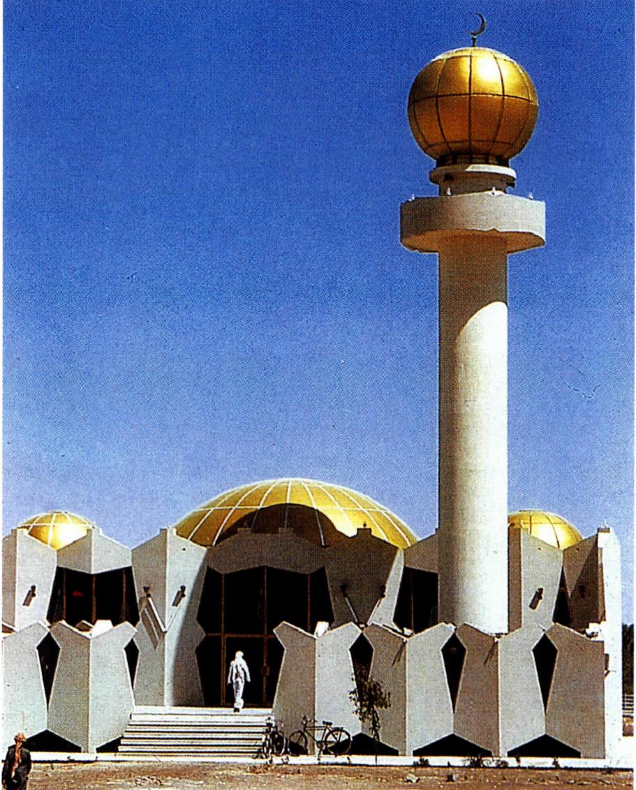 〔구 조〕 건립 이유나 설립자에 상관없이 모든 모스크에는 특유의 건축 요소가 있다. 이를 통하여 모스크는 학교 · 병원 · 궁전 등 유사한 이슬람 건축물과 구별되는데,가장 큰 특징은 우선 건물의 한쪽 벽이 메카를 향하도록설계되어 있다는 점이다. 이 벽은 다른 벽들과는 달리 예배의 방향을 향한 벽이라 하여 '카블라(Qibla) 벽' 이라고한다. 예배 때 무슬림들은 이 벽을 향하여 횡(橫)으로 대열을 만든다. 좁고 길쭉한 중세 유럽의 교회와는 달리 모스크가 정방형에 가까운 구조를 취하는 것은 이 때문이다.