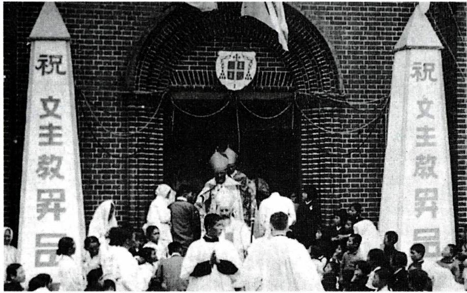 무세 주교 서품식장 입구(위)와 서품 축하식 모습.