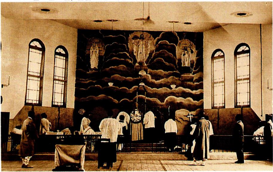 그러나 줄리앙 신부는 1909년 봄에 부산 본당으로 전 임되고, 김명제 신부가 2대 주임으로 부임하였는데, 그 는 부임 이듬해 전교 및 지역 계몽 사업의 일환으로 배명 학교(培命學校, 1926년 폐교)를 설립하였다. 학교 명성이 널리 알려져 멀리 통영, 거제, 사천, 곤양, 함안 등지에 서 학생들이 모여들었으며, 1915년에는 가난한 이들을 위한 긍련회(矜憐會)를, 그 이듬해에는 소화유치원을 설 립하였다. 이때까지 성당은 찰방 관서 건물을 보수해서 사용하고 있었는데, 400여 년 된 노후 건물이라 더 이상 의 보수가 어려워짐에 따라 3대 김양홍 신부 재임시인 1923년 11월 23일 성당(현 유치원 강당)을 신축하였으 며, 기존의 배명학교와 유치원, 신자들의 사랑방을 중수 개축하였다. 1920년대 문산 본당은 경남 및 전남 지역 의 관할 공소만 무려 97개소에 달해 공소 순회 기간만 7 개월 이상이 소요되었으므로 공소 담당 전교 회장을 따 로 임명하여 사목의 효율화를 도모하였고, 무의탁 행려 노인들을 위한 고조원(孤助院)을 설립하여 지역 복지 사 업에도 일익을 담당하였다. 1928년경 본당 단체로는 전 교회, 성모 부인회, 공교 소년회(公敎少年會), 호상계(護 喪契), 가톨릭 오시(五時) 품꾼회 등이 있었다. 이어 5대 김영제 신부 재임시인 1932년 5월 29일에는 3천여 명 이 참가한 진주 지역 최초의 성체 거동을 문산 본당에서 거행하였으며, 교세가 계속 증가함에 따라 1935년 8월 22일에 성당 신축 공사에 착수하여 1937년 5월 6일 성 당과 사제관 · 수녀원을 건립하였다. 그러던 중 김영제 신부는 타본당보다 수도 성소자가 많음을 확인하고 1937 년 4월 8일 본당 내에 성모 성심원(聖母聖心院, 1957년 경 한국 순교 복자 수녀회에 합병)을 설립하였다. 이후 김영 제 신부가 함안 등 몇몇 본당을 거쳐 밀양 본당에 부임하 자, 1951년 회원들도 밀양 본당 내로 본원을 옮겨 사목 활동을 도왔다.