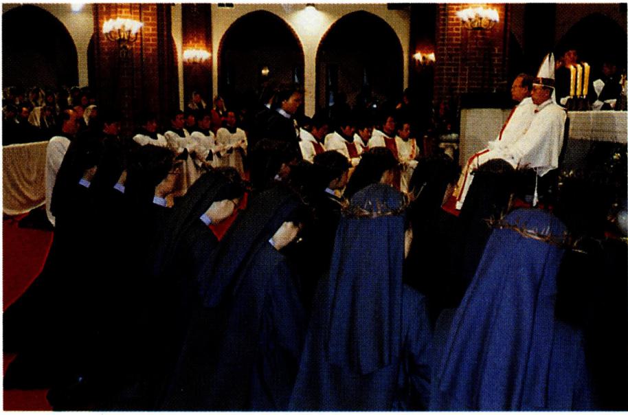〔본당의 현재〕 1976년 미리내 공소는 큰 변화를 겪게 되었다. 부산 광안리에서 남녀 수도회 창설을 준비하던 정행만(프란치스코 사베리오) 신부가 수원교구장 김남 수(金南洙, 안젤로) 주교의 허락을 받아 미리내에 정착 하게 된 것이다. 같은 해 9월 24일 미리내에 부임한 정 행만 신부는 우선 남녀 수도회를 재개하였고, 이어 10월 12일 미리내 공소가 다시 준본당으로 승격되면서 주임 신부로 임명되었다. 이 수도회 중에서 '미리내 성모 성 심 수녀회' 는 1983년 7월 11일 교황청으로부터 회헌을 승인받고, 이듬해 2월 2일 수원교구장으로부터 인가를 받았으며, '미리내 천주 성삼 성직 수도회' 는 1991년 3 월 19일에 교황청으로부터 회헌을 승인받음과 동시에 수원교구장으로부터 인가를 받았다.