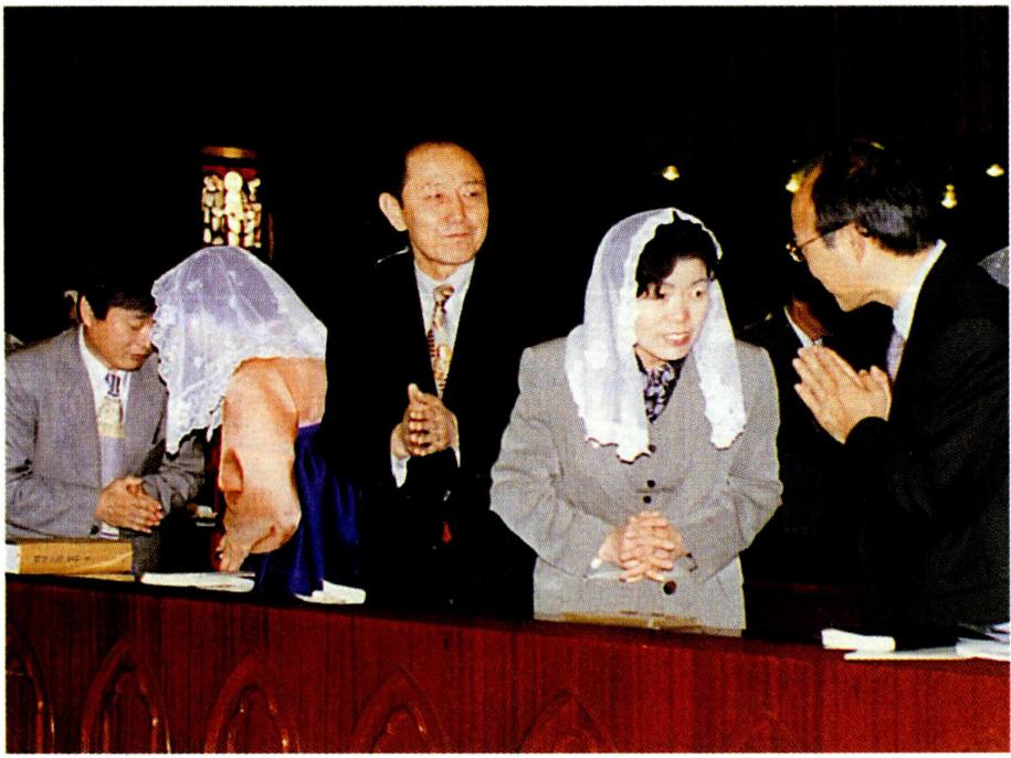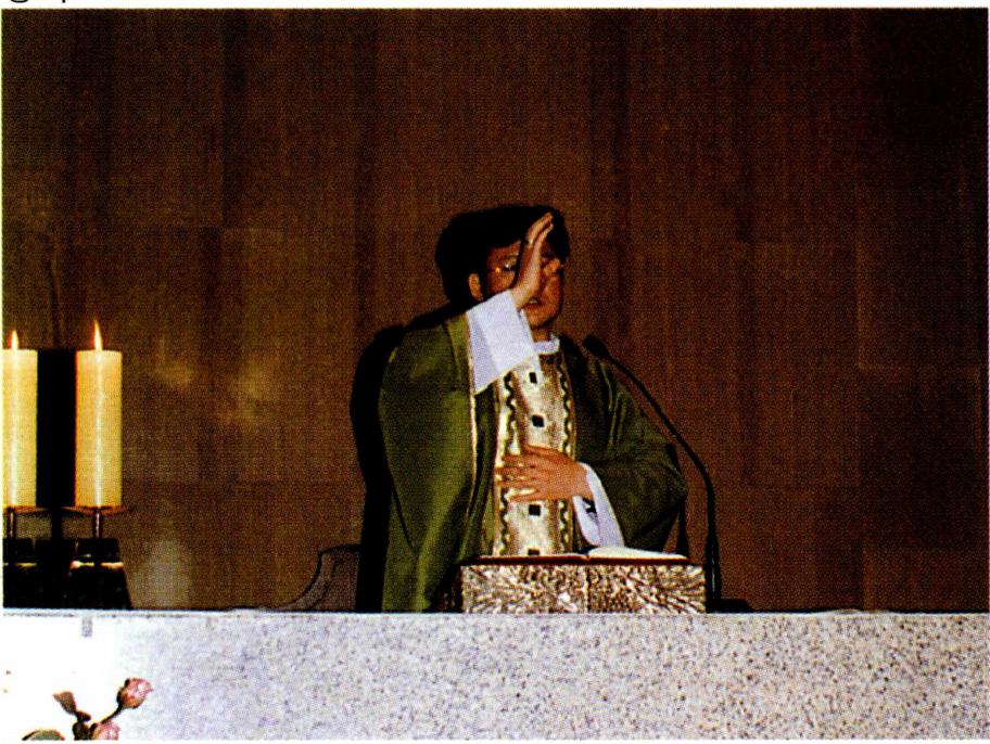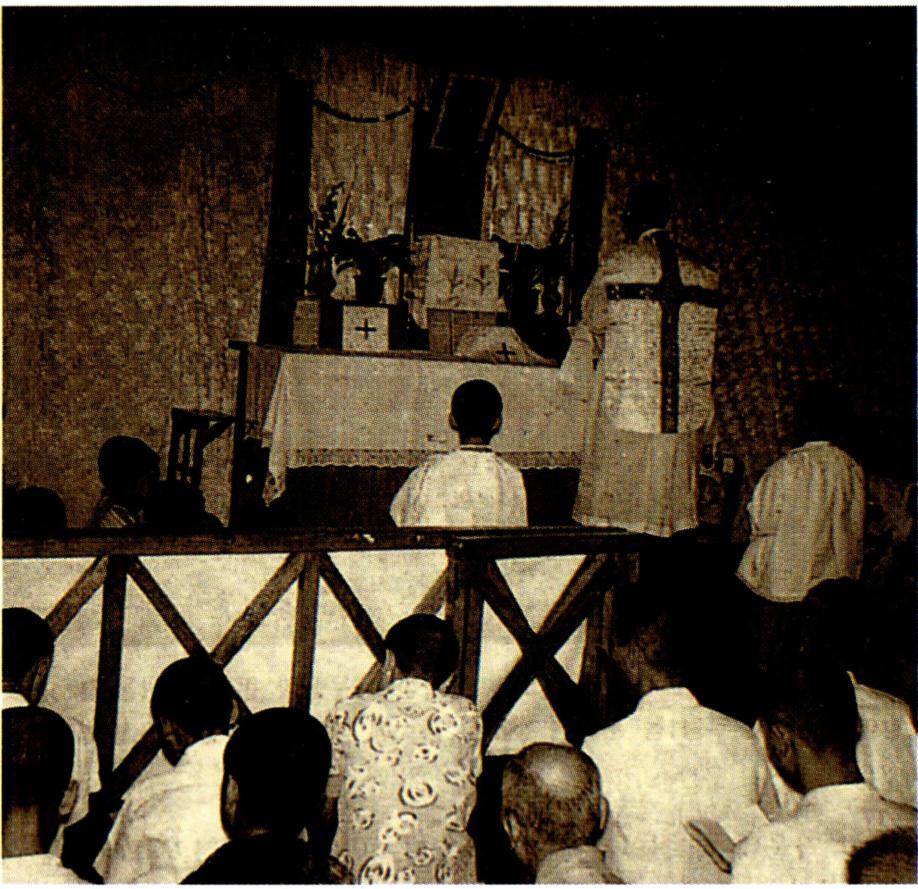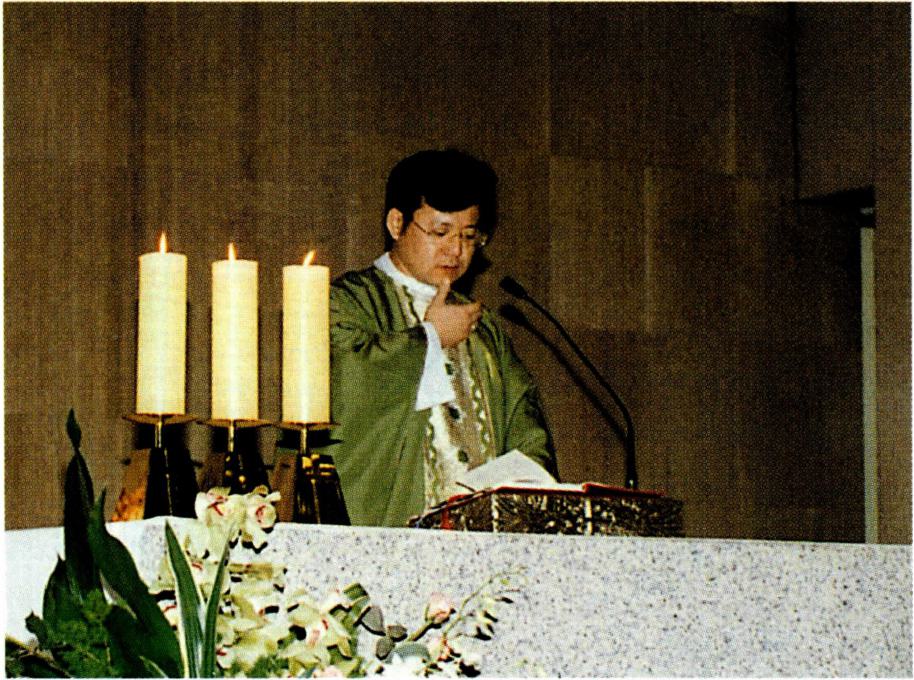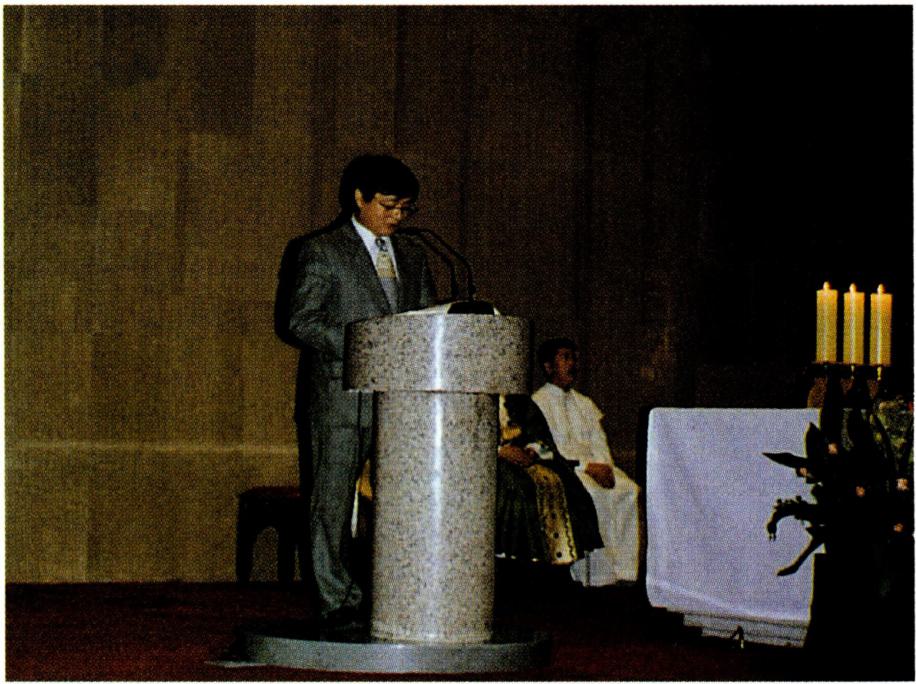 〔생명의 나눔〕 하느님과 인간 간의 수직적 방향선을 잃어 가는 현대인들은 인간 상호간의 수평선도 잃어 가 고 있다. 영원한 생명의 근원인 하느님으로부터 멀어져 가는 현대인은 자연히 현세주의, 물질 만능주의, 감각적 향락주의에 빠질 수밖에 없다. 자연 과학, 우주 공학, 전 자 공학 등 현대의 산업화가 전 우주와 전세계를 한 덩어 리로 만들고 시공의 한계를 넘는 단계에 도달하였지만 그렇다고 인간 상호간의 간격까지 초월시켰다고 볼 수는 없다. 이러한 산업화의 물결 속에서 동서간, 국가간, 민 족간, 사회간, 인간간의 관계가 소월해짐으로써 현대인 은 스스로 소외감을 느끼게 되고 아집과 정신적 이기주 의의 노이로제에 사로잡혀 있다. 이와 같은 상황에 처해 있는 현대인들에게 종교는 그들이 이웃이 되고 더불어 활기 있게 살아갈 수 있는 계기를 마련해 주어야 할 것이 다. 예수 그리스도의 십자가 상 제사는 '모든 이를 위하 여' 자신을 희생한 행위이고 모든 이에게 참되고 영원한 생명을 가져다 준 행위이다. 십자가 위에서 벌린 예수 그 리스도의 두 팔은 모든 인간, 특히 소외당하고 가난하고 병든 사람들을 함께 모으고 참 생명을 주는 행위였다. 모 든 이에게 영원한 생명을 누리게 하는(요한 3, 14-15) 예수의 십자가는 천상과 지상을 이어 주는 수직선과 산 이 와 죽은 모든 이를 연결시켜 주는 수평선의 만남이다. 이 십자가 상 제사를 재현하고 기념하는 미사는 모든 이에 게 생명의 음식을 제공하는 잔칫상이다. "나는 하늘에서 내려온 살아 있는 빵입니다. 내가 줄 빵은 곧 내 살로서 세상의 생명을 위해 주는 것입니다"(요한 6, 51). "너희는 모두 이것을 받아먹어라. 이는 너희를 위하여 내어 줄 내 몸이다. 너희는 모두 이것을 받아 마셔라. 이는 새롭고 영원한 계약을 맺는 내 피의 잔이니 죄를 사하여 주려고 너희와 모든 이를 위하여 흘릴 피이다."