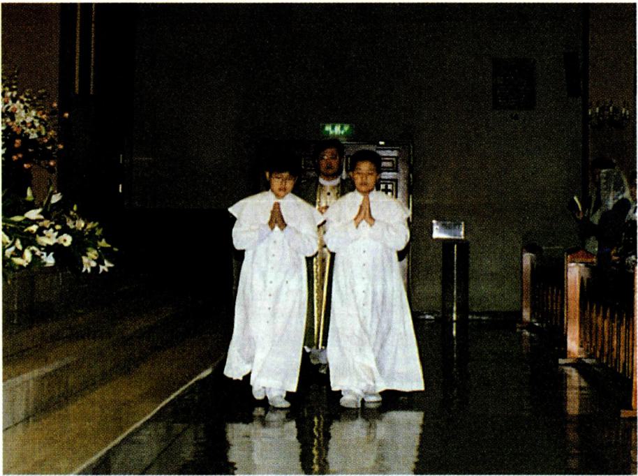 3~5세기 : 3세기 이후에 그리스 도교가 그리스와 로마 문화권에서 발 전 · 성장되면서 미사의 예식도 그들 문화에서 많은 영향을 받게 되었다. 이러한 인접 문화로부터의 영향은 313년 콘스탄틴 대제의 밀라노 관용 령 이후에 더욱 가속화되었다. 종교 자유는 우선 교회의 외적 발전에 많은 영향을 주어 대성 전의 건축, 교회 음악의 발전, 전례 용어의 라틴어화 등 이 이루어졌고, 일반 대중의 생활 풍습이 전례에 도입되 었을 뿐만 아니라 황제의 궁전에서 시행되던 예절은 주 교가 집전하는 장엄 미사 예식에 큰 영향을 주었다.