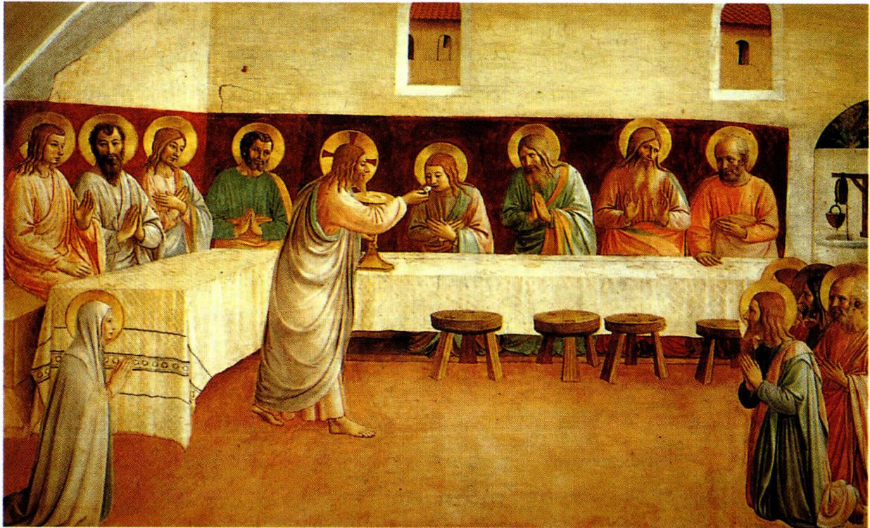 바오로 사도와 루가 복음사가는 최후 만찬 때 예수 그 리스도가 빵을 들고 축복한 후 "이는 여러분을 위하는 내 몸입니다. 여러분은 나를 기억하여 이를 행하시오"라 고 하였고 "만찬 후에" 잔을 들고 축복한 다음 제자들에 게 주었다고 전한다(1고린 11, 24-25 ; 루가 22, 19-20) 바오로와 루가가 만찬의 다른 절차에 대해서는 간략하게 설명하면서 포도주 잔에 대해서는 '만찬 후에' 라고 좀더 세밀하게 설명한 것은 이 사건이 그들에게는 중요하였음 을 내포하고 있는 것이다. 이는 만찬이 거의 끝날 무렵 '축복의 잔' 이라고 하는 포도주 잔을 축복하는 유대교의 만찬 예식과 예수의 최후 만찬을 그대로 답습한 식탁 공 동체의 형태였다는 것을 제시한 것이다. 미사 성제의 근 원이요 원형이라고 할 수 있는 예수의 최후 만찬 형식은 그 근본적이고 본질적 내용과 중심 사상에는 변화가 없 지만, 이를 거행하는 양식과 절차는 시대를 거치면서 많 은 변화를 가져왔다.