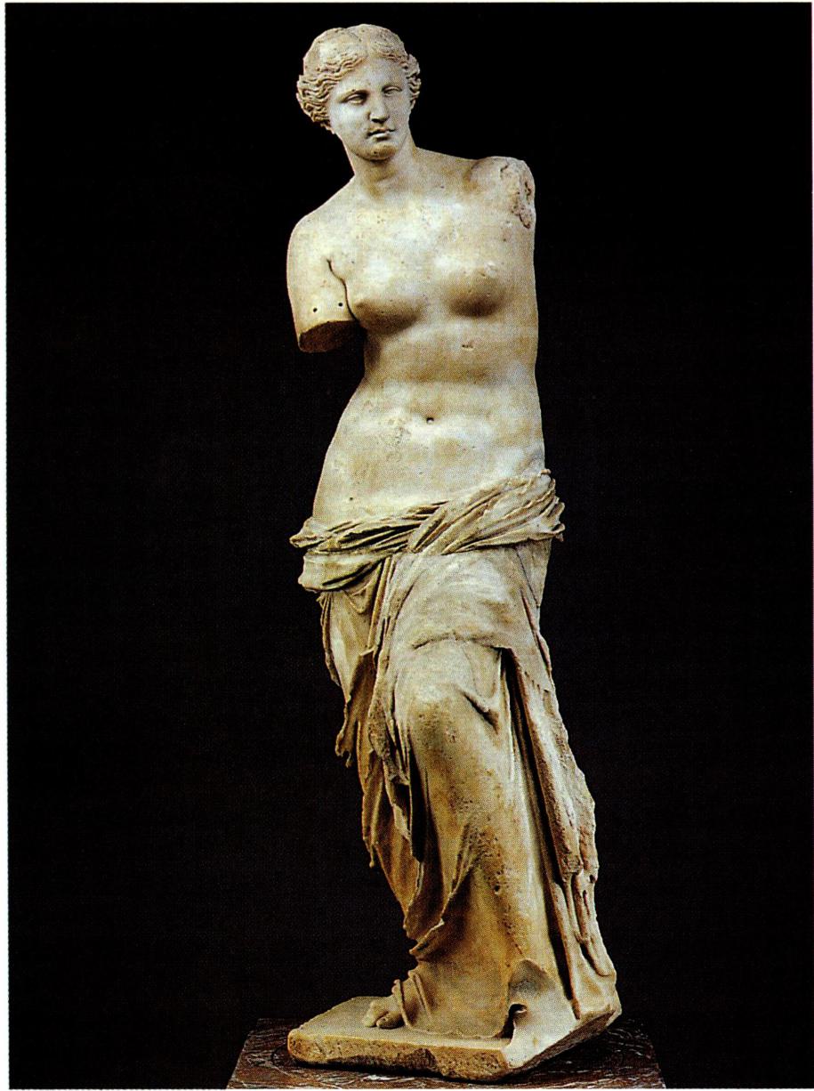 '칼로스' (καλός, 아름다운)라는 형용사를 호메로스 (Homeros, 기원전 9세기경)는 오로지 감각적이고 구상적 인 대상에 사용하였으며, 피타고라스(Pythagoras, 기원전 582~500경) 학파는 우주의 형식적 질서 및 완전성을 조화 (harmonia)로 보고 이를 추구하였다. 플라톤의 미에 대한 가장 통일적인 서술은 《향연》(Symposium)과 《파이드로 스》(Phaidros)에 나타난다. '사랑' (eros)은 미를 향수하려 는 정신의 가장 강렬한 파토스(pathos)적 충동이며 일종 의 '광기' (mania)라고도 할 수 있지만, 정신은 이 에로스 에 인도되어 감각적 형태의 미로부터 출발하여 보다 높 은 차원의 미를 추구하며 이데아 그 자체의 미를 관조한 다. 신(新) 플라톤주의자(Neoplatonist)인 플로티노스는 미 란 존재의 근원으로서 순수한 유일자인 신으로부터 유출 된 보편적이고 영원한 이데아가 감성적 형식으로 나타난 것이라고 하였다.