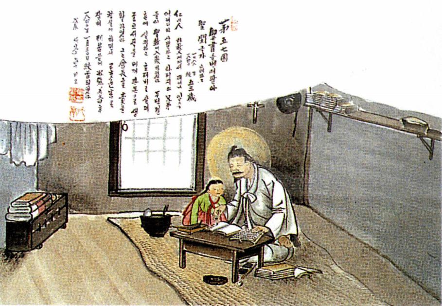 교리서를 베껴 판 돈으로 생계를 유지하며 전교한 민극가(탁희성 작) .