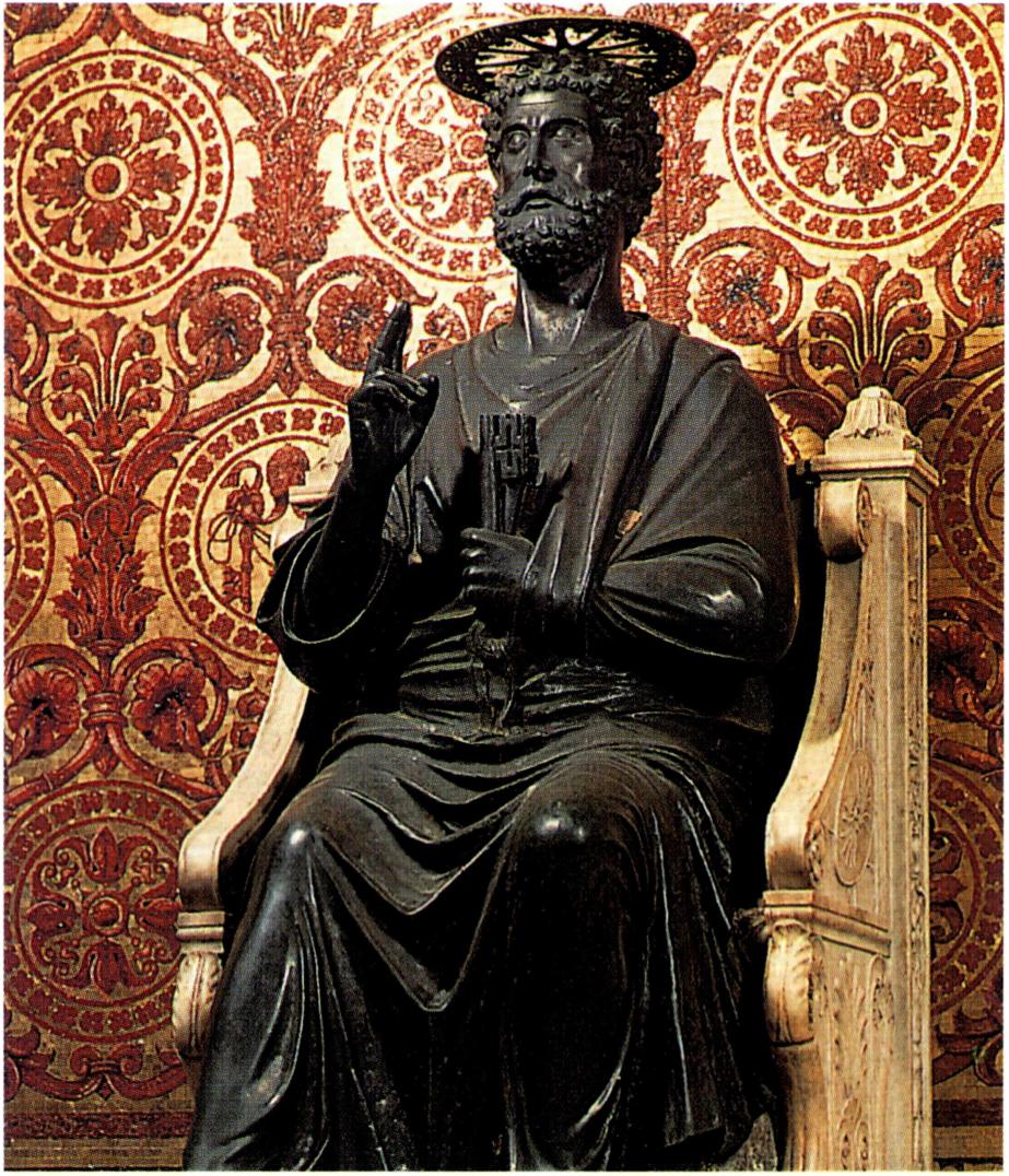 로마의 5대 바실리카 중 하나로 교황청에 인접해 있는 총 대주교좌 대성전. 베드로 대성전 봉헌 기념일은 11월 18일. 최초의 베드로 성당은 90년경 교황 아나글레토(St. Anacletus, 79~90/92)가 베드로의 무덤 위에 세운 작은 경당이었다. 그 뒤 콘스탄틴 대제가 그리스도교를 공인하면서 베드로의 무덤이 있다고 믿은 바티칸 언덕에 바실리카식 성당을 건축하였다. 건축 장소를 남쪽으로 조금만 옮겼어도 평지 위에 지을 수 있음에도 불구하고 성당을 이곳에 지은 것은, 베드로의 유해가 조그만 신전(Aedicula) 밑에 안장되어 있다고 믿었기 때문일 것이다. 326~333년경에 건축이 시작되어 30년 간의 공사 끝에 완공되었는데, 성당 정문을 들어서면 중앙에 분수가 있는 아트리움(atrium)이 있고, 회랑으로 둘러싸인 이 아트리움을 지나면 성당으로 통하는 5개의 문이 있다. 신랑(身廊, nave)은 아치형의 문으로 끝나는데 이 문에는 콘스탄틴 대제와 베드로의 모자이크가 새겨져 있었고, 각각 11개의 고창(高窓, clerestory)이 달린 벽에는 총대주교들, 예언자들, 사도들과 성서의 내용을 담은 프레스코화가 그려져 있었다.