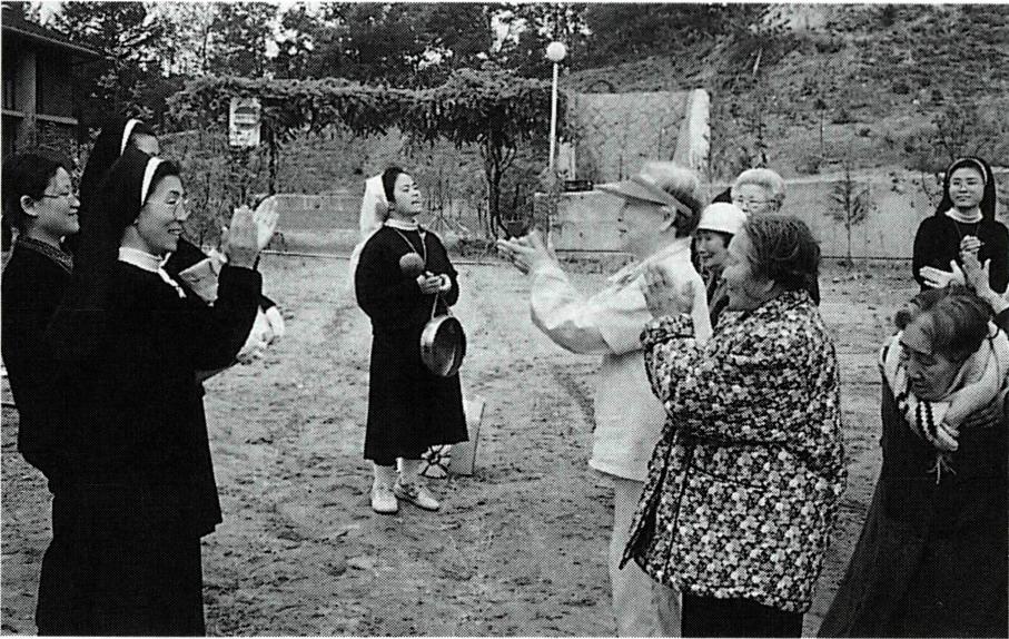 자문 위원으로 위촉된 신경 정신과 의사 강홍조(글레멘스)는 원생들의 참상을 목격하고서 이 보육원을 인수하 였는데, 이것이 현재의 '충북 재활원' 이다. 그러나 충북재활원이 특수 교사의 부족으로 많은 어려움을 겪게 되 자 1984년에 청주교구장 정진석(鄭鎭奭, 니콜라오) 주교는 설립 100주년을 맞이한 보혈 선교 수녀회를 초청 하였고, 이 요청에 따라 이듬해 11월 24일 아프리카에서 선교하던 한국인 수녀 3명이 입국하였다. 이들은 곧 바로 청주시 흥덕구의 운천 주공 아파트에 임시 수녀원을 마련한 후, 충북 재활원에서 원생들의 전인적 성장과 인지 발달을 통한 재활을 위해 종사자(보모)들에게 전문교육을 실시하는 한편, 중증 장애아들의 신변 처리 교육을 비롯하여 20세 이상의 원생들에게는 직업 재활 교육을 실시하였다. 또 정서 장애아(자폐아 등)들을 위한 특수학교로 '청주성신학교' 를 설립하여 운영하면서 5년 간봉사하였다. 이어 수녀회에서는 1989년 5월, 부강(芙江) 성당 내의 한옥을 수리하여 본원을 이곳으로 잠시옮겼다가 이듬해 10월 6일 현 소재지에 수녀원, 수련소,엠마우스 피정의 집을 각각 신축 · 이전하였다.