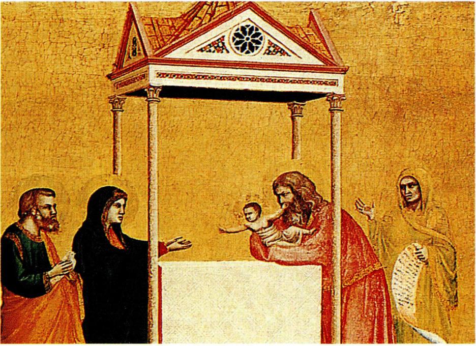 봉헌은 하느님께 대한 예배 행위(왼쪽)로서, 아기 예수도 성전에서 하느님께 봉헌되었다.