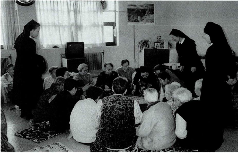 성 빈센트 병원에서의 활동(왼쪽)과 '사강 보금자리' 양로원.