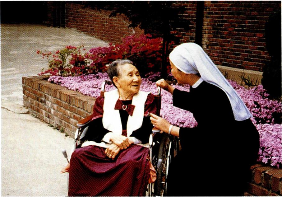 〔한국 진출〕 경로 수녀회의 한국 진출은 1971년 9월 1일, 3명의 외국인 수녀들이 양로원 사업을 위해 내한한데서 시작되었다. 이들은 곧 서울에서 한국어 교육을 받은 후 1973년 7월 30일 청주에 있는 성심원을 인계받아 운영해 나갔다. 본래 성심원은 1968년 청주교구장 파디(James Pardy, 巴智) 주교가 설립한 것으로 경로회 수녀들이 부임하였을 당시 5명의 수녀가 46명의 노인들을 돌보고 있었다. 이때 수녀들은 그 운영을 인계받은 뒤부터 새로운 계획을 수립하여 이듬해 현재의 양로원 건물을 건립하고, 새 입회자들을 받기 시작하였다. 그러나 처음에는 수련소가 마련되어 있지 않았으므로 입회자들은 프랑스 본원에 가서 수련 생활을 해야 했다. 한국 분원에서 수원에 제2의 양로원 겸 수련소를 건립한 것은 1990년이었다. 한편 이 수도회가 국제 수도회이기 때문에 그 동안 탄생한 한국인 수도자들은 한국은 물론 외국에도 진출하여 1993년 현재 9개국에서 활동하고 있으며, 한국 분원에는 모두 9명의 수도자들이 두 곳의 양로원에서 사도직에 임하고 있다.
