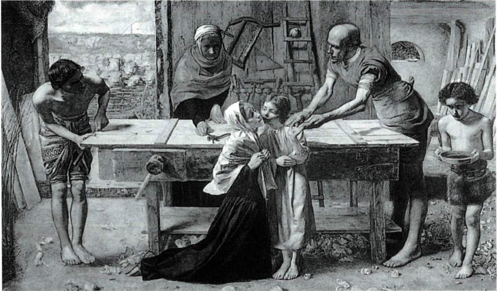 사실주의의 성향을 보여 주는 영국 작가들로는 1848년에 프레-라파엘라이트' (Pre-Raphaelite)라는 그룹을 결성한 로제티(D.G. Rossetti, 1828~1882) , 헌트(W.H. Hunt, 1827~1910), 밀레이(J.E. Millais, 1829~1896) 등을 들 수 있다. 이들의 반형식주의적인 예술 의욕은 로마의 '루카조합' 을 모범으로 하여 라파엘로(S. Raffaello, 1483~1520)이전의 이탈리아 화가들이 보여 준 반인위적인 자연성을 추종한 것이다. 이들에게 있어서 표현의 일차적인 의미는 선이었으며, 색채는 그 하위에 두었다. 주제는 대도시 사람 · 노동자 · 이민자 등 다양한 대상이 재현되었고, 종교적인 내용이나 중세의 동화 혹은 영웅 이야기 등이 주제에 포함되기도 하였다. 특히 1850년에 밀레이가 그린 <부모 집에서의 그리스도>(Chist in the House ofhis Parents, 런던 테이트 갤러리 소장)는 성가정에 대한 지나친 사실적 묘사로 당대에 큰 비판을 불러일으키기도 하였다.