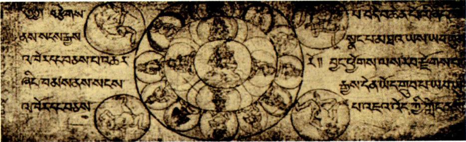 〔티베트의 <사자의 서>〕 동양권에서 널리 알려진 티베트의 <사자의 서>는 사람이 죽었을 때 승려를 초청하여 죽은 이의 귓전에서 독송하는 경전이다. 이것은 지금으로부터 1,200년 전에 인도 밀교(密敎)의 대가인 파드마 삼바바(Padma Sambhava)가 티베트에 와 저술한 것으로, 원래의 제목은 <바르도 퇴돌>(Bardo thodo)이다. '바르도' 란 사람이 죽은 다음에 다시 환생할 때까지 머무르는 사후의 중간 상태를 말하며, '퇴돌' 은 듣는 것으로 영원한 자유에 이르는 것을 의미한다. 따라서 <바르도 퇴돌>은 '사후 세계의 중간 상태에서 듣는 것(聽聞)만으로 영원한 자유에 이르는 가르침' 이라고 번역된다.