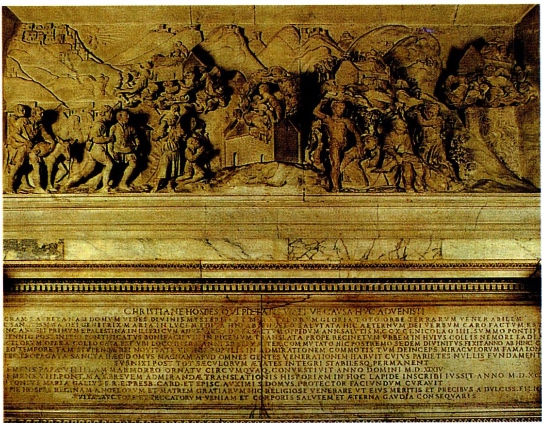 안드레아 산소비노 작품인 <그리스도의 세례>(왼쪽)와 로레토 산타 카사 성당의 대리석 조각.