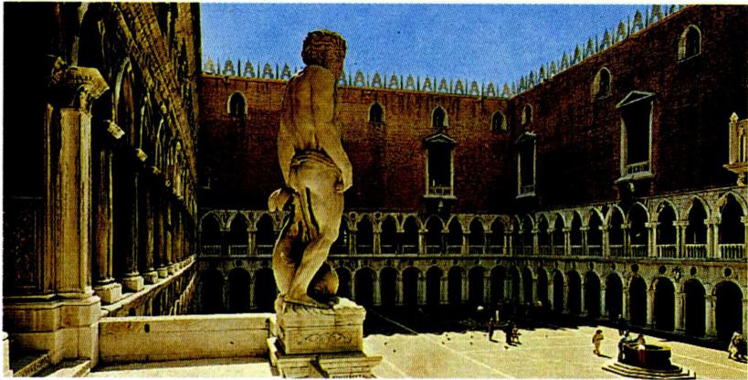 자코포 산소비노가 총책임을 맡아 건축한 베네치아의 성 마르코 성당(왼쪽)과 총독궁 계단의 <넵륜> 대리석상.