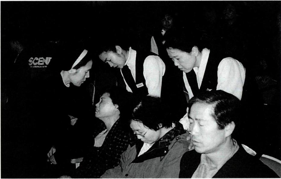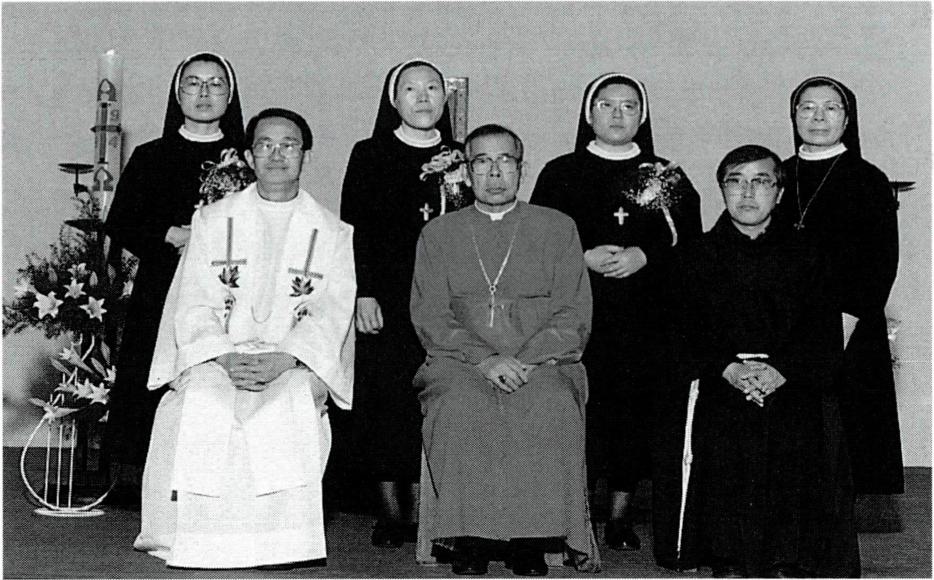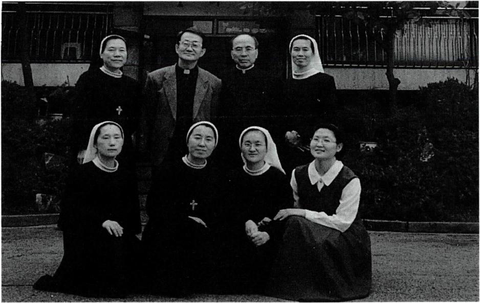 ▲ '성산 기도의 집' 에서의 공동체 생활(왼쪽)과 최창무 주교의 사목 순시 때 본원 앞에서.