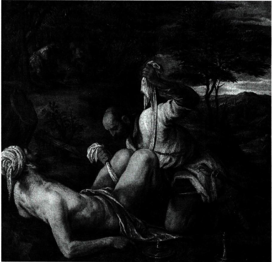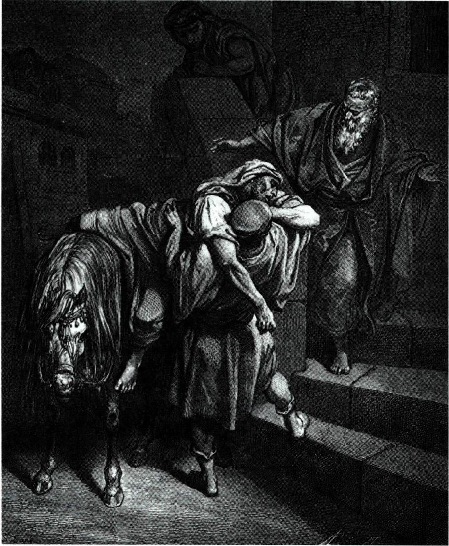 십계명을 받은 모세가 이스라엘 백성들에게 읽어 주고 있다.