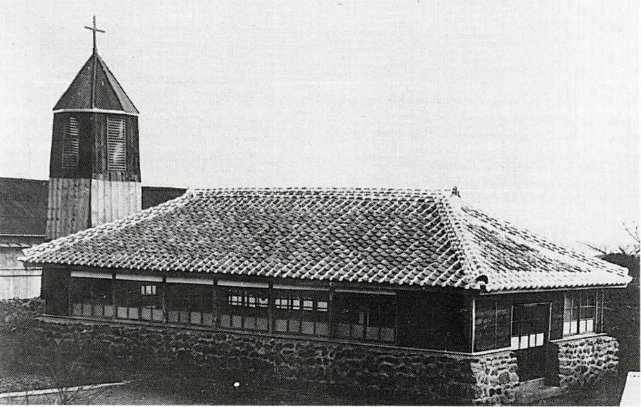 〔본당 설립과 신축교안〕 서귀포 지역에 천주교 신앙이 전파된 것은 1898년 4월경 육지를 왕래하다가 세례를 받고 돌아온 양용항(梁用恒, 베드로)이 고향인 대정군 색달리(穡達里, 현 서귀포시 색달동) 인근에 신앙을 전하면서부터였다. 그 결과 신 아우구스티노와 바오로 형제, 김 생원, 강 도미니코 등 새 예비 신자들이 탄생하게 되었고, 이들이 곧 제주의 첫 신자들이었다. 이 무렵 제8대 조선교구장 뮈텔(Mutel, 閔德孝) 주교는 제주 지역에 복음의 터전을 마련하려는 목적에서 1899년 4월 22일자로 페네(Peynet, 裴嘉祿) 신부를 주임으로, 김원영(아우 구스티노) 새 신부를 보좌로 임명함으로써 '제주 본당'을 설정하였다. 이들은 그 해 5월 16일 제주도로 들어가 제주 대로동(大路洞, 현 제주시 삼도1동)에 거처를 마련하는 한편, 양용항이 입교시킨 신입 교우들에게 세례를 주기 시작하였다.