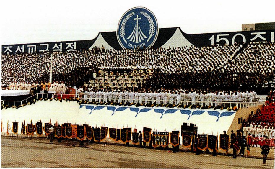1980년은 2월 23일에 열린 한국 천주교회 창설 200주년 기념 행사 준비위원회 대표자 모임으로 시작되었다. 그리고 5월 3일 가톨릭 중앙 의료원 강남 성모병원이 개원하였고, 11월 25일에는 서울대교구 사목 협의회가 발족되었으며, 1982년 11월 20일에는 서울대교구 가톨릭 실업인회가 창립되었다. 한편 1981년 초부터는 조선교구 설정 150주년 기념 사업이 시작되면서 그 해 6월 14일의 지구별 신앙 대회를 거쳐 10월 18일에는 전국 신앙 대회가 여의도 광장에서 개최되었다. 이날의 신앙 대회는 한국 천주교회가 창설된 이래 가장 규모가 큰 행사였다. 한편 민주화 운동은 1980년 5월 17일의 광주 민중 항쟁을 계기로 새로운 양상으로 전개되어 가고 있었다.
