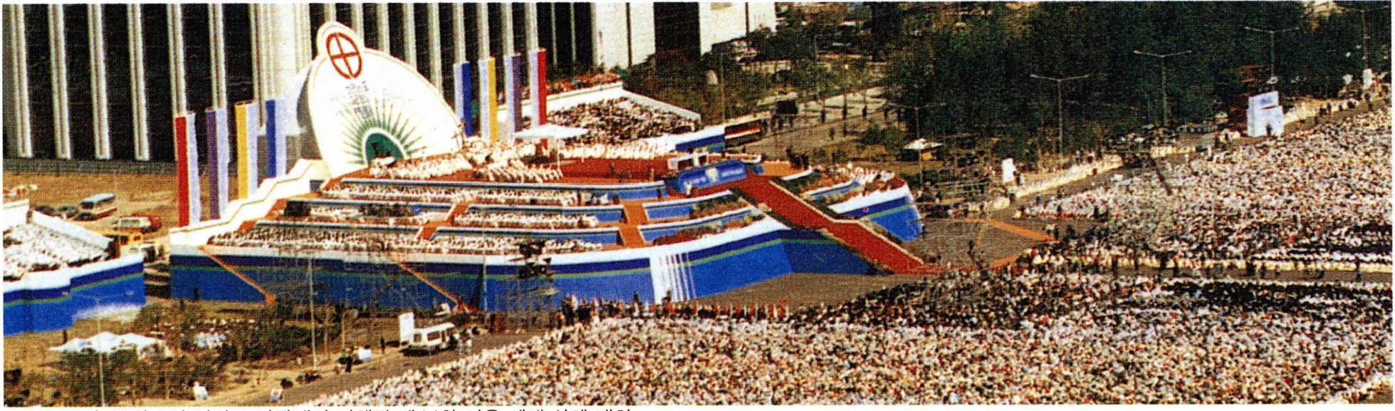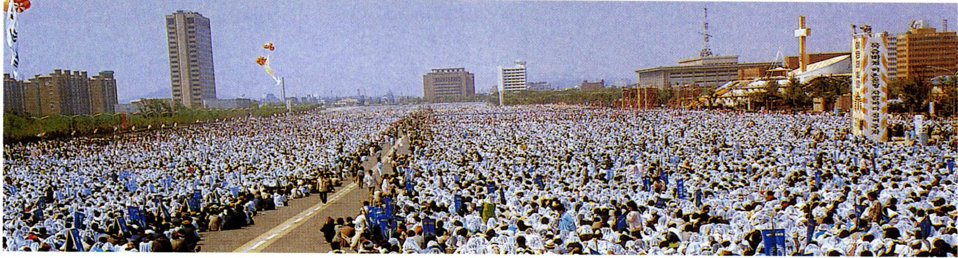 1986년 3월 14일에는 교황청에서 제44차 세계 성체 대회의 1989년 개최지를 서울로 확정 · 발표하였다. 이에 따라 11월 21일에는 성체 대회 준비위원회가 발족되었으며, 1987년 9월 13일에는 지구 성체 대회가, 이듬해 10월 16일에는 대전에서 한국 성체 대회가 개최되었다. 아울러 세계 성체 대회를 기념하여 '한마음 한 몸 운동' 이 전국적으로 전개되어 교회 안팎으로 좋은 반응을 얻게 되었다. 그런 다음 1989년 10월 4일에 평화의 날 행사를 시작으로 본격적인 성체 대회 일정이 시작되었으며, 10월 8일에는 교황 요한 바오로 2세가 두 번째로 한국을 방문한 가운데 여의도 광장에서 세계 성체 대회가 개최되었다.