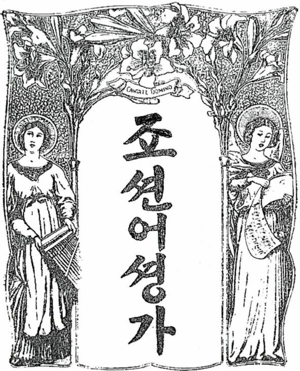 시작 시구로 하는 데 반해, 후자는 내용에 따른 성가 제 목을 사용하며 "입당송(Ad Introitum) 삼덕가"처럼 라틴어 로 전례 용도까지 밝혀 주었다. 그리고 가사 기록 방법도 전자는 1절만 악보 밑에 적고 2절 이하는 별도로 처리하 는 데 반해, 후자는 5절 이상의 긴 몇 개의 가사를 제외 하고는 모두 악보 밑에 함께 기록하였다. 이렇게 5선 악 보에 라틴어 가사의 발음을 한글로 표기한 《조선어 성 가》의 표기 방식은 긍정적인 평가를 받으면서 《죠션어 성가》(1932) 재판에 이어 현행 《가톨릭 성가》로까지 이 어졌다.