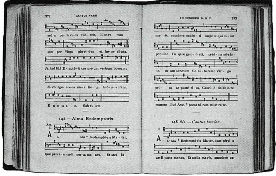 한편 이 당시 그레고리오 성가들은 라틴어 표기법상 두 부류로 나뉘는데 그 하나가 1925년에 제작된 《칸투 스 미세》(Cantus Missse)이다. 이는 4선 악보의 네우마와 라틴어 가사로 된 본격적인 그레고리오 성가집으로 509 면의 방대한 분량이며, 뒤편에는 《죠션어 성가》(1924)에 실린 62곡이 모두 수록되어 있다. 그리고 다른 한 부류 는 1932년의 《라듼 성가》와 장호원 본당에서 1936년에 제작한 《성가집》으로, 라틴어 가사의 발음을 한글로 표 기하였는데, 이러한 한글 표기 방식은 대구교구의 《공교 성가집》과 덕원 베네딕도 수도원의 《조선어 성가》에서 이미 시도된 바 있다.