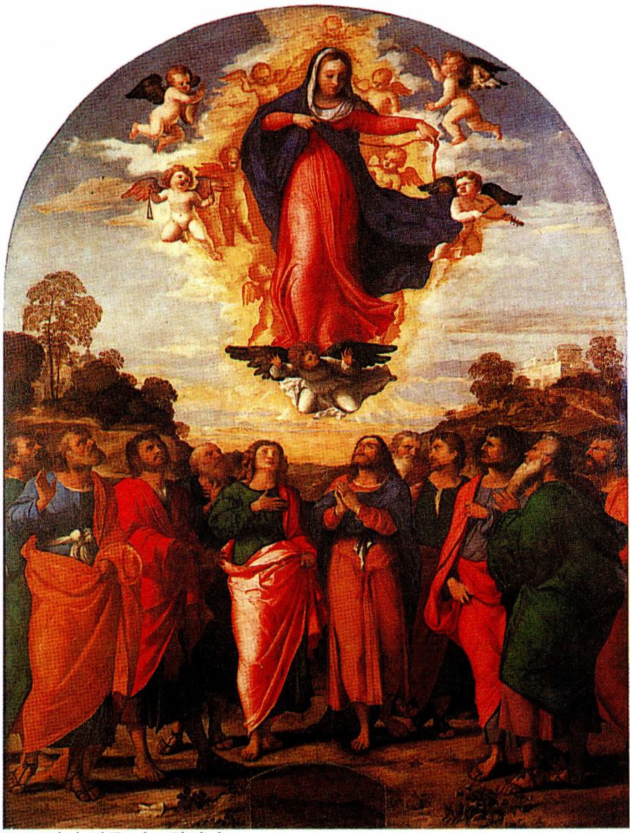 성모의 사망 시기는 예수 승천 후 3일 혹은 50일 등 의견이 다양하나(왼쪽) 성모 승천 교리는 교회의 정통 가르침이다.