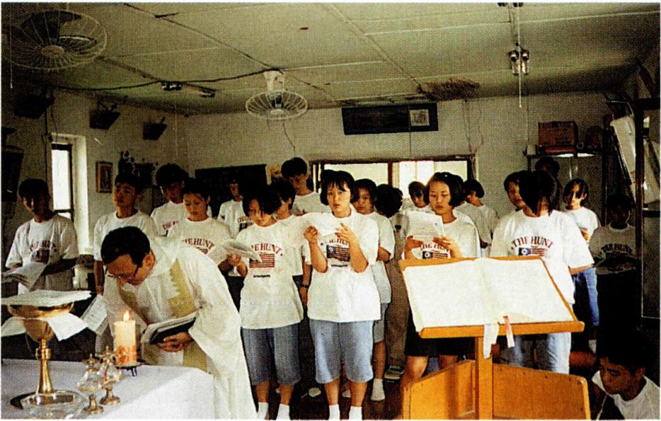 〔한국 진출〕 1991년 12월 25일 광주대교구장 윤공희(尹恭熙, 빅토리노) 대주교의 초청으로 광주시 금호동 723-10번지에 거처를 마련한 성모 승천 수도회 회원들은, 진출 즉시 회원 양성 등 본격적인 활동 준비에 착수하였다. 그리고 1996년 6월부터 3개월 동안 안동교구 옥산 본당에서 사목을 담당하였으며, 1999년 2월 4일에는 광주대교구 학다리 준본당의 사목을 담당하면서 본원을 이곳으로 이전하였다. 1999년 7월 현재 종신 서원자 2명, 청원자 1명 등 3명의 회원이 한국에서 성모 승천 수도회의 뿌리를 내리기 위해 노력하고 있다. (⇦ 몽소 승천회 ; → 성모 승천 봉헌자 수녀회)