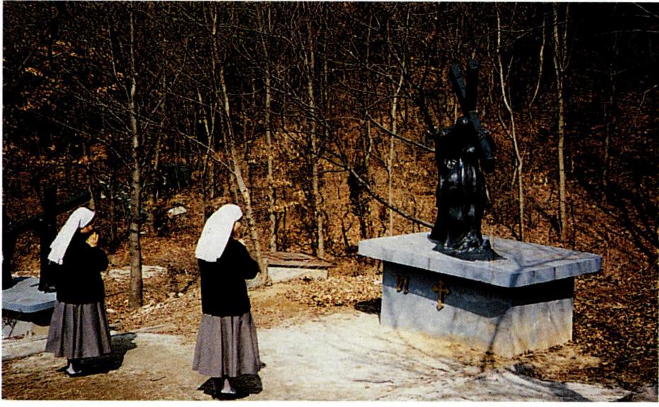 〔수녀원의 이전과 성장〕 부천 신천리의 토질이 척박하여 농사에 부적합할 뿐만 아니라 교통도 불편하자, 선종완 신부는 1967년 6월 14일에 교통이 편리하고 자연 경관도 좋은 경기도 시흥군 과천면 막계리 산 104-2번지로 수녀원을 이전하였다. 그리고 이듬해 11월 30일 수녀원과 성당을 완공하고 봉헌식을 거행하였다. 1969년 8월 22일에는 초대 수원교구장 윤공희(尹恭熙, 빅토리노) 주교로부터 수녀회 인가를 받았으며, 1970년 4월 6일 첫 서원에 이어 1973년 9월 8일에는 첫 종신 서원식을 거행하였다. 그리고 그 해 경기도 용인군 이동면 묵리(墨里)에 15,000평의 부지를 매입한 뒤 1975년 5월 1일 이곳에 수련소(240평)를 준공하였다.
