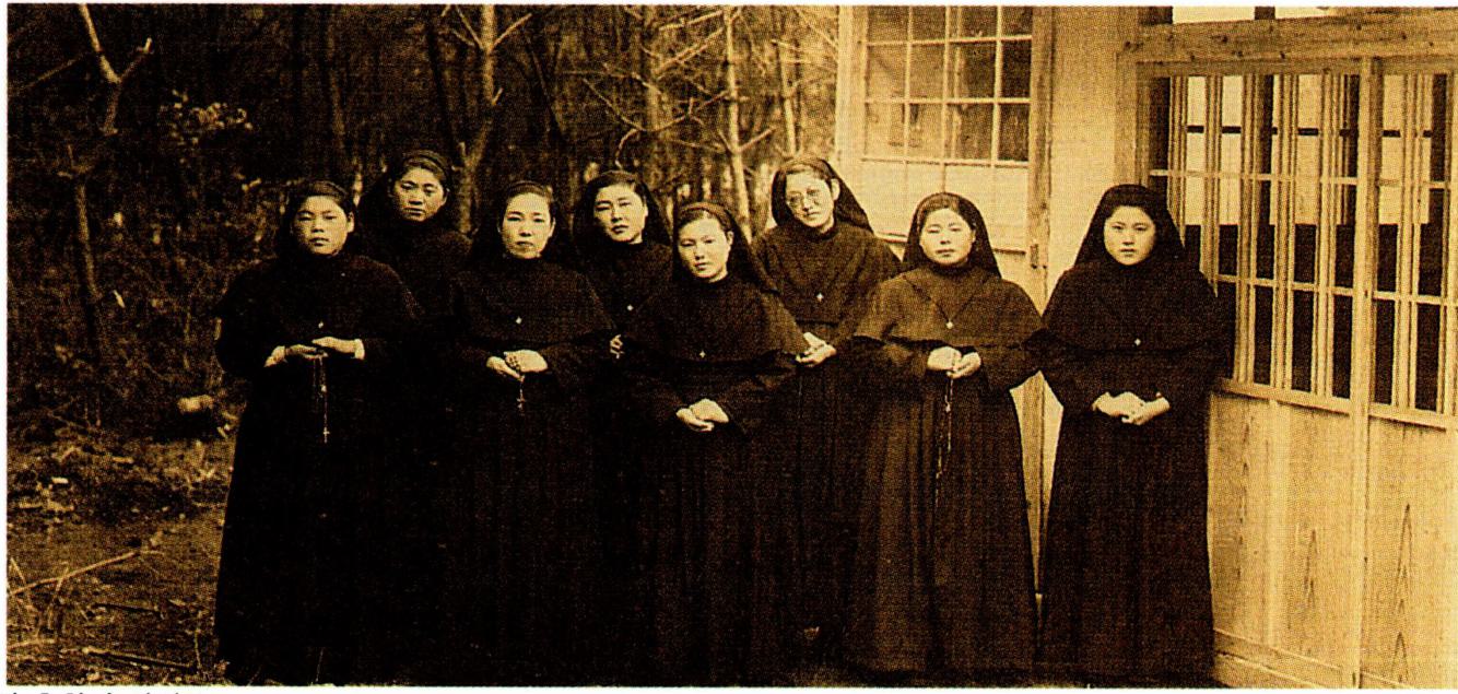 창립자 미로하나 신부(왼쪽)와 성모의 기사 수녀회 초창기 회원들.