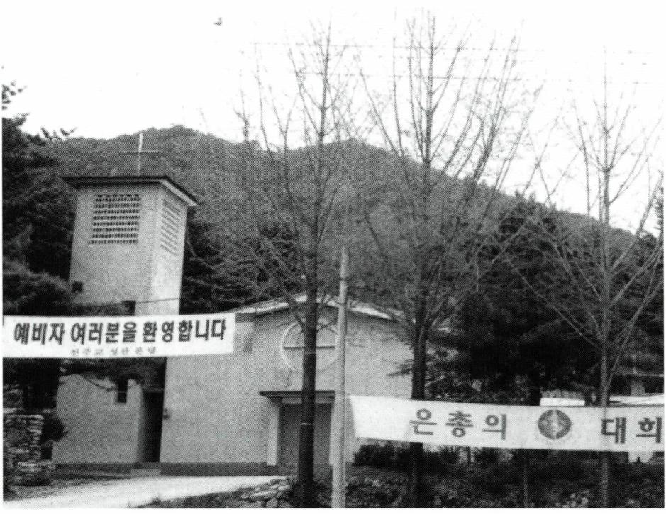 되었다. 그 후 12세대 42명에 불과하였던 신자수가 계 속 증가하자, 교구에서는 1976년 8월 16일자로 성산리 공소를 본당으로 승격시킴과 동시에 전세권 신부를 초대 주임으로 임명하였다. 당시 본당 신자수는 816명이었 고, 화촌면의 송정(松亭), 두촌면의 철정(喆亭) · 역내 (驛內) · 두촌(斗村) · 장남(長南), 내촌면의 내촌(乃村) 공소들이 모두 성산 본당 관할이었다.
