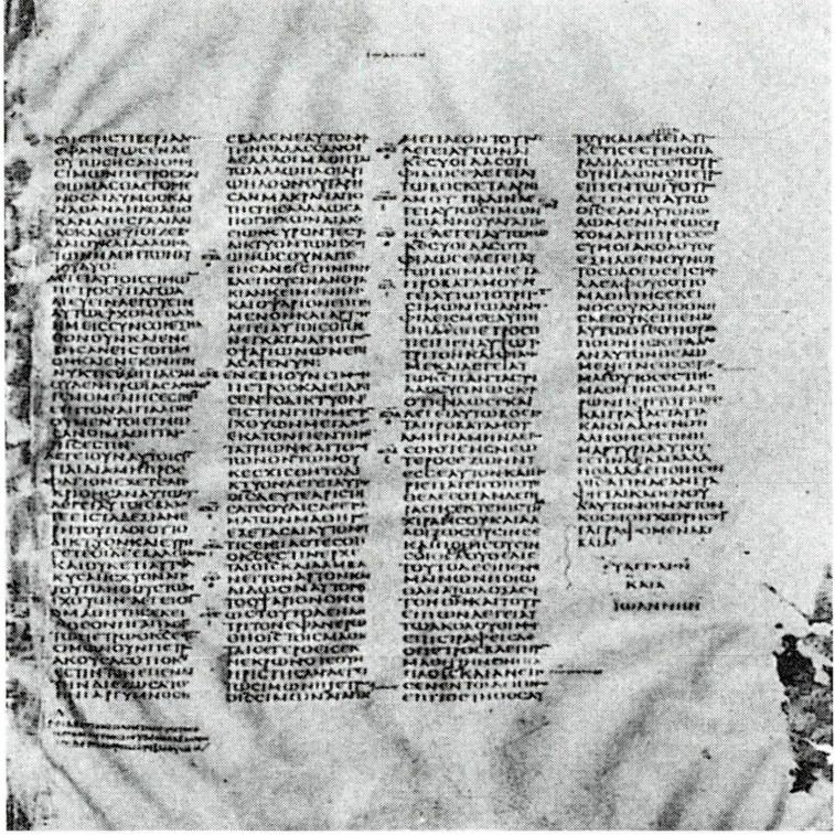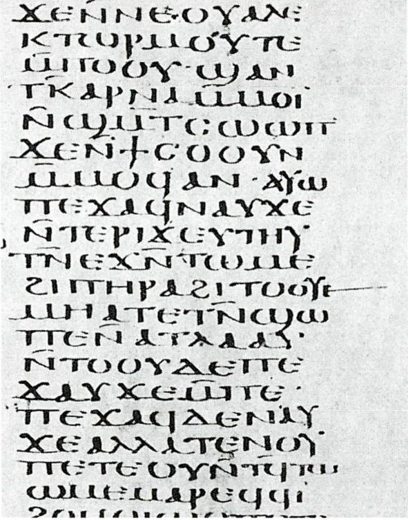 125~150년경의 그리스어 역본(왼쪽)과 이집트 사하디 방언으로 된 콥트어 역본, 그리고 4세기 그리스어 역본 중 요한 복음서 부분.