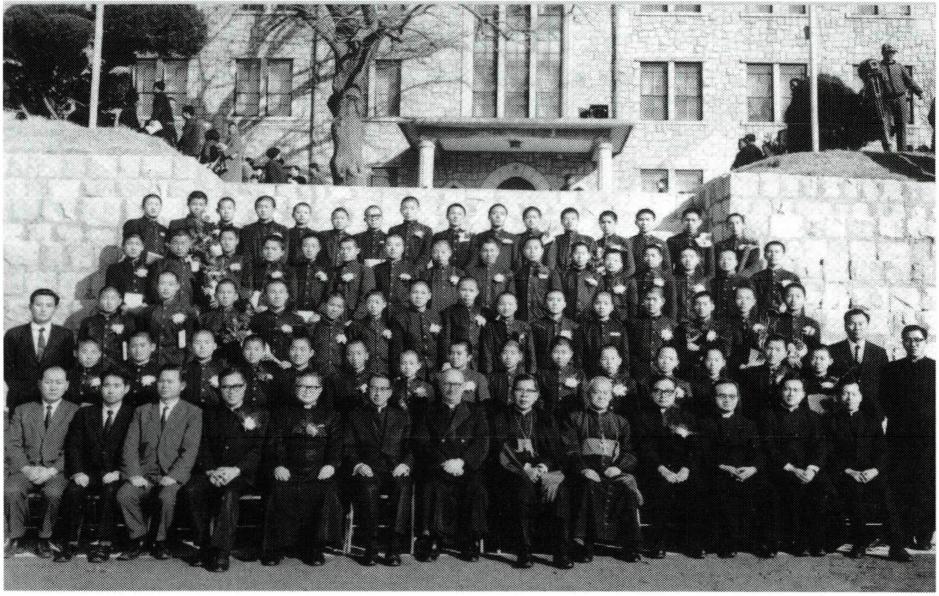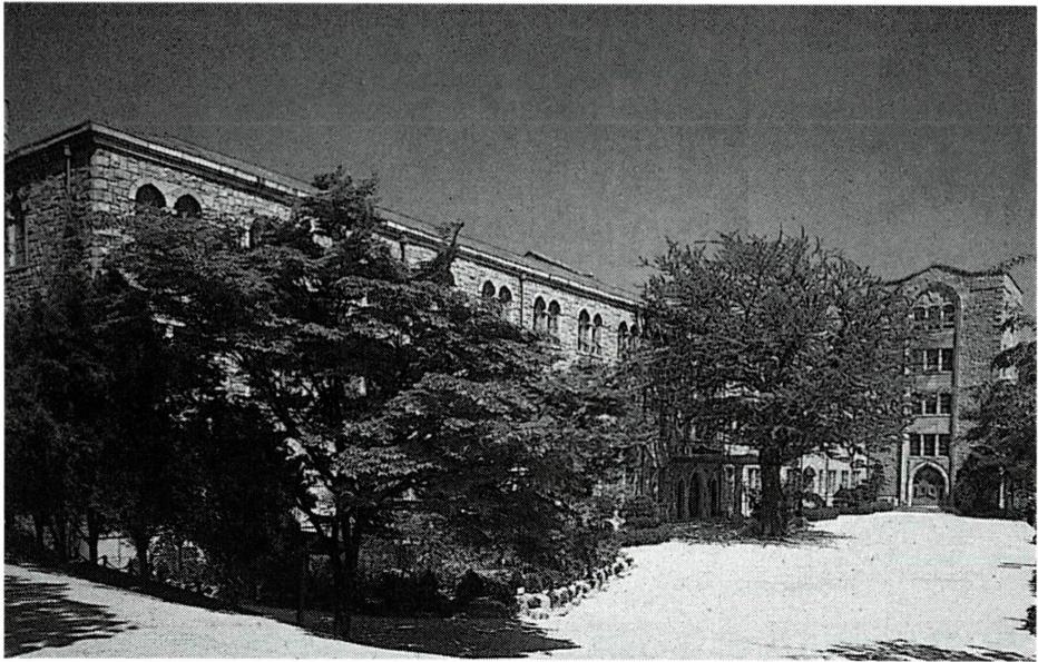 1935년 동성신학원 당시의 교사와 신학생(왼쪽), 그리고 성신고등학교 전경.