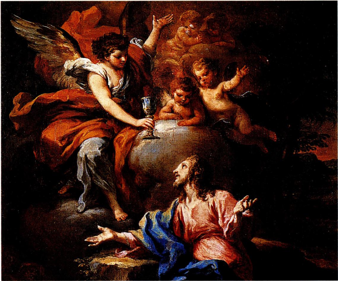 미사 중 성찬 전례 때 사용되는 성작(왼쪽)과, 게쎄마니에서 "이 잔을 저에게서 거두어 주소서" 라고 기도하는 예수 그리스도.