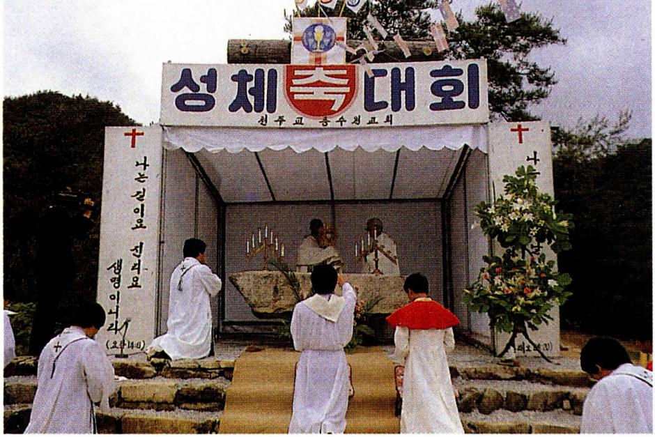 성체의 형상 안에 성자(聖子)이신 예수 그리스도가 현 존한다는 믿음과 성체에 대한 공경을 표현하는 신심 행 위. 주로 미사 밖에서 이루어지는 이 성체 신심 행위에는 여러 가지 형태가 있는데, 성체 현시(聖體顯示, expositio Eucharistiae), , 성체 조배(聖體朝拜, adoratio Eucharistie) , 성체 강복(聖體降福, benedictio Eucharistiae), 성체 거동 (聖體擧動, processio Eucharistiae) , 성체 대회(聖體大會, congressus Eucharisticus) 등이다. I . 성체 공경의 역사와 현행 예식 [역 사] 성체에 대한 흠숭과 존경을 표현하는 것은 초 대 교회 때부터 있어 왔다. 초대 교회 때 미사에 참례한 신자들은 성체를 집으로 모셔 가기도 하였고, 노자 성체 를 위해 정성껏 보관하기도 하였다(유스티노, 《호교론》 1, 67 ; 히폴리토, 《사도 전승》 32). 또 초대 교회 이후 성체를 모셔 갈 때에는 무릎을 끓거나 부복을 하였는데, 이러한 공경의 표현은 오늘날 동방 전례에 그대로 남아 있다. 그 러나 성체는 눈에 띄지 않는 견고한 장소에 보관되었으 며, 신자들의 조배를 위하여 성체를 일정한 장소에 현시 하는 등의 특별한 예식은 없었던 것 같다. 초기의 그리스 도교 건물은 신자들이 일정한 시간에 예배를 위해 모이 는 단순한 용도로 이용되었으나, 시간이 지날수록 점차 신자들이 자신들에게 적당한 시간에 기도하러 오는 장소 가 되었고, 특히 수도원의 부흥과 더불어 경당은 기도를 위한 공간으로 여겨지게 되었다. 그러나 이때까지 성당 의 중심은 제대였고, 감실은 단순히 성체 보존을 위한 장 소로 여겼다. 중세를 거치면서 성체 안의 그리스도 현존에 대한 논 쟁이 시작되었고, 성체의 신비에 대한 새로운 신심이 일 어나면서 성체 공경에 대한 신앙은 급속도로 확산되었 다. 이는 전례의 쇠퇴에 기인한 것이었다. 즉 라틴어로만 전례가 이루어짐으로써 신자들이 전례 언어를 알아듣지 못하게 되었고, 또 전례가 소수 특권 계층을 위한 예절이 되어 가면서 나타나기 시작하였던 것이다. 특히 중세 신 심 운동의 기초는 "그리스도를 통하여 아버지께로" (ad Patrem per Filium) 나아가는 것이었고, 따라서 그리스도와 의 특별한 일치 또는 그리스도를 본받음의 신심 등이 강 조되었다. 그 결과 보이는 성체 안에 그리스도가 현존한 다는 신앙이 신자들에게 성체를 특별히 공경하도록 열의 를 불어넣어 주었고, 이해하기 어려운 언어로 집전되는 미사에서보다는 개인적인 묵상이나 눈으로 볼 수 있는 성체 현시 등을 통한 미사 밖의 신심 행사에서 더욱 큰 흠숭과 공경의 대상이 되었다. 이렇게 성체는 중재자 그 리스도의 볼 수 있는 표징이 되었으며, 천상과 지상을 연 결시키는 고리와 같은 역할을 하게 되었다. 9세기 말경부터는 환자들을 위해 성체를 보관하던 제 의실 안의 금고 같은 형태의 감실이 성당 제대 위에 놓이 게 되었다. 그리고 성체 신심이 점차 발전하면서 11세기 말경 클뤼니 수도원 등에서는 감실 앞에서 절을 하는 관 습이 생겼으며, 더 나아가 감실을 장식하고 그리스도의 현존을 상징하는 등불 즉 성체등을 감실 곁에 켜 두게 되 었다. 이러한 과정을 거쳐 성체 신심은 더욱 확장되어 12세기경에는 성체 공경을 위한 고유 예절이 생겨나게 되었는데, 이 예식은 13세기 초 파리 교회 회의에서 공 식적으로 규정되었다. 그 내용은 빵을 축성한 후 모든 신 자들이 그리스도의 몸인 성체를 보고 흠숭하도록 거양 성체(elevatio)를 하도록 하는 것이었다. 나아가 축성된 성체를 조배하는 것이 영성체와 동등시되기도 하였다. 미사 밖 성체 공경은 13세기부터 특히 아시시의 성 프란 치스코(1182?~1226)와 그의 수도회로 인하여 급증하였 다. 13세기에는 개인적으로 성체를 흠숭하는 기도들이 사용되었고, 사제들은 성체를 나눈 후에 인사의 표시로 무릎을 꿇었으며, 성체를 만진 후에는 공경의 표시로 성 체를 만진 두 손가락을 모은 채 기도하였다. 그리고 7~ 14세, 좁게는 10~12세가 되어야만 영성체를 할 수 있 었으나, 새로 영세한 어린이들의 영성체는 12세기 이후 에는 일반적으로 사라지게 되었다. 한편 거양 성체 예식 에 이어 '경배' 혹은 '조배' 라는 이름의 성체 신심이 출 현하였는데, 이 이름이 공식적으로 채택된 것은 트리엔 트 공의회(1545~1563)에서였다. 중세 중엽 이후 성체 공경 신심이 더욱 발달해 감에 따 라 다양한 형태의 감실이 만들어졌고 화려한 장식으로 꾸며져 제대 위에 놓이게 되었다. 그러자 제4차 라테란 공의회(1215)에서는 감실과 성체가 훼손되는 것을 막기 위해 "지극히 거룩하신 그리스도의 성체를 제대의 가장 좋은 곳에 모시고, 소중하고 경건하게 대해야 한다. 그리 고 가능한 한 자물쇠로 잠가야 한다" 고 규정하기에 이르 렀다. 이러한 형태의 감실은 프랑스 · 이탈리아 · 독일 등 을 거쳐 더욱 다양하게 발전하였는데, 특히 독일에서는 성당 제대 옆 성가대석이 있는 곳에 탑 형태의 감실을 두 고 주변에 철창을 두르기도 하였다. 그리고 감실은 금속 재료와 유리를 함께 사용하여 성체가 보이도록 제작되기 도 하였는데, 이를 바탕으로 출현한 것이 바로 성광(聖 光, ostensorim)이다. 성체 신심 행사들도 다양해져 14세기 독일 지방에서 는 '성체 축일' (C