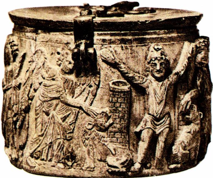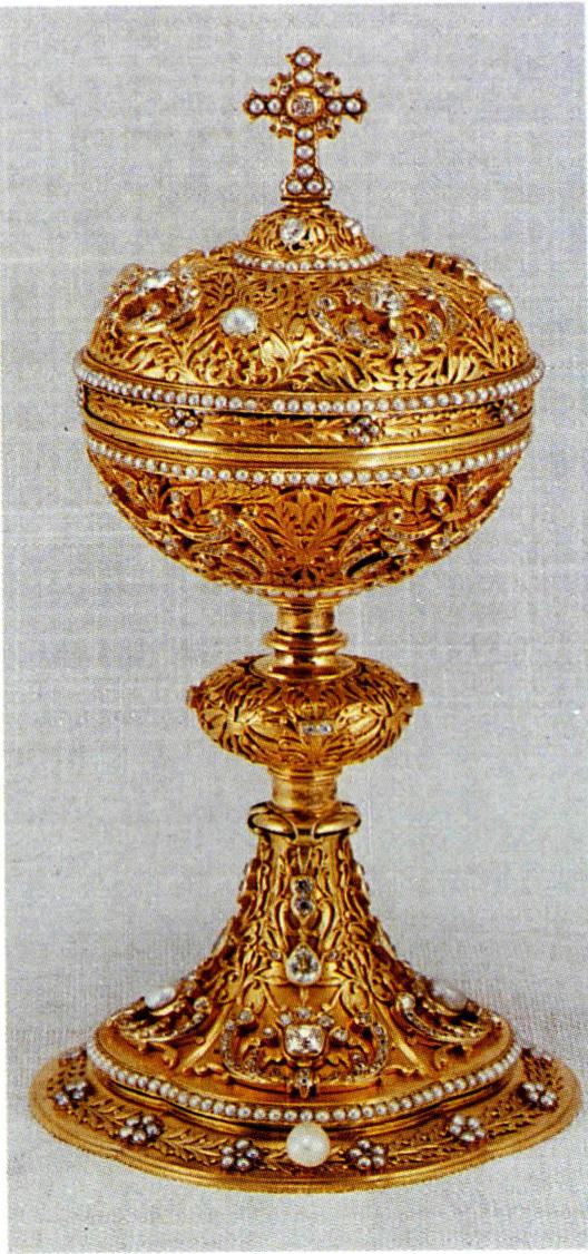 성체를 넣어 두는 성합은 '치보리움' (왼쪽)과 작은 상자 형태의 '픽시스' 로 구분되며, 6세기경 이집트에서만들어진 상아로 된 그릇(오른쪽 아래)이 그 원형이다.