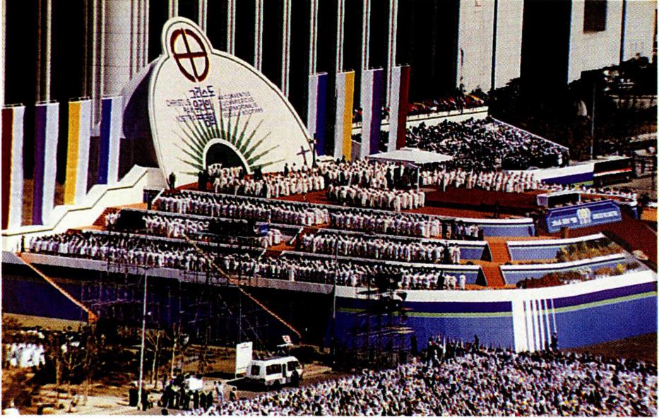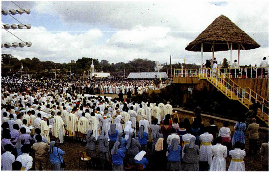 ▲ 1981년 프랑스 루르드에서 열린 제42차 세계 성체 대회(왼쪽)와 1985년 케냐 나이로비에서 열린 제43차 세계 성체 대회.
